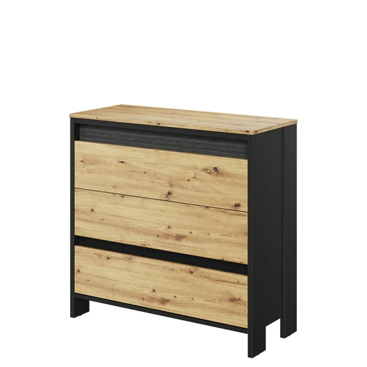 - Komoda posiada 3 szuflady, wyposażone w prowadnice kulkowe z pełnym wysuwem.
