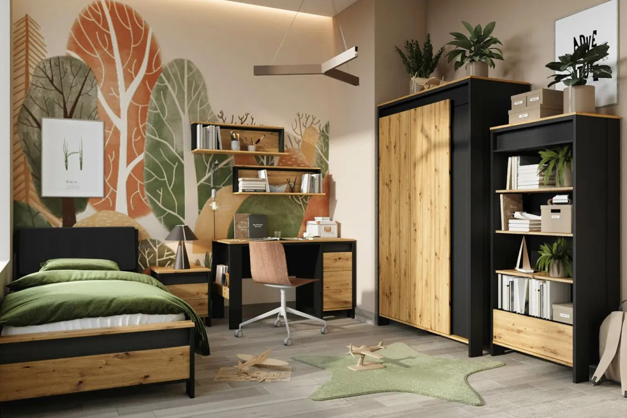 - Meble SPOT to propozycja dla wymagających nastolatków, którzy marzą o aranżacji pokoju w nieco tajemniczym klimacie z elementami stylu industrialnego.