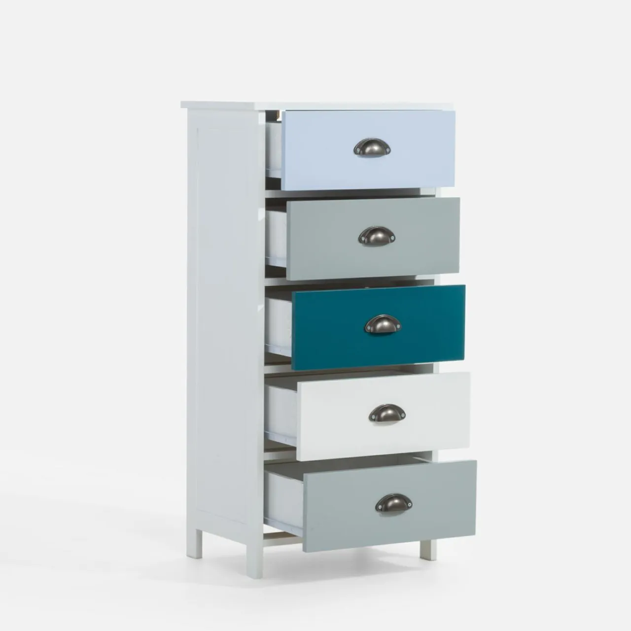 - Aż 5 szuflad pomieści bieliznę, koszulki, rękawiczki, szaliki, dokumenty czy notatki.
