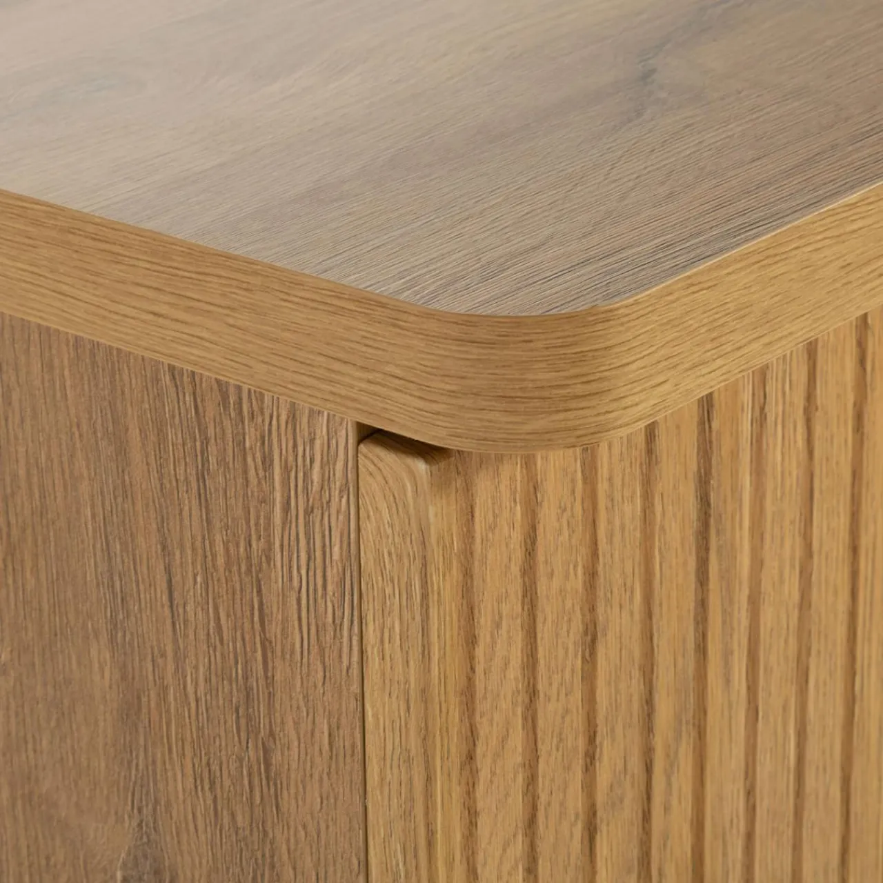 Kolekcję do salonu LUCIA wyróżnia wykończenie w imitacji jasnego dębu grandson o wyraźnym rysunku drewna, przez co zyskuje nieco retro charakter.