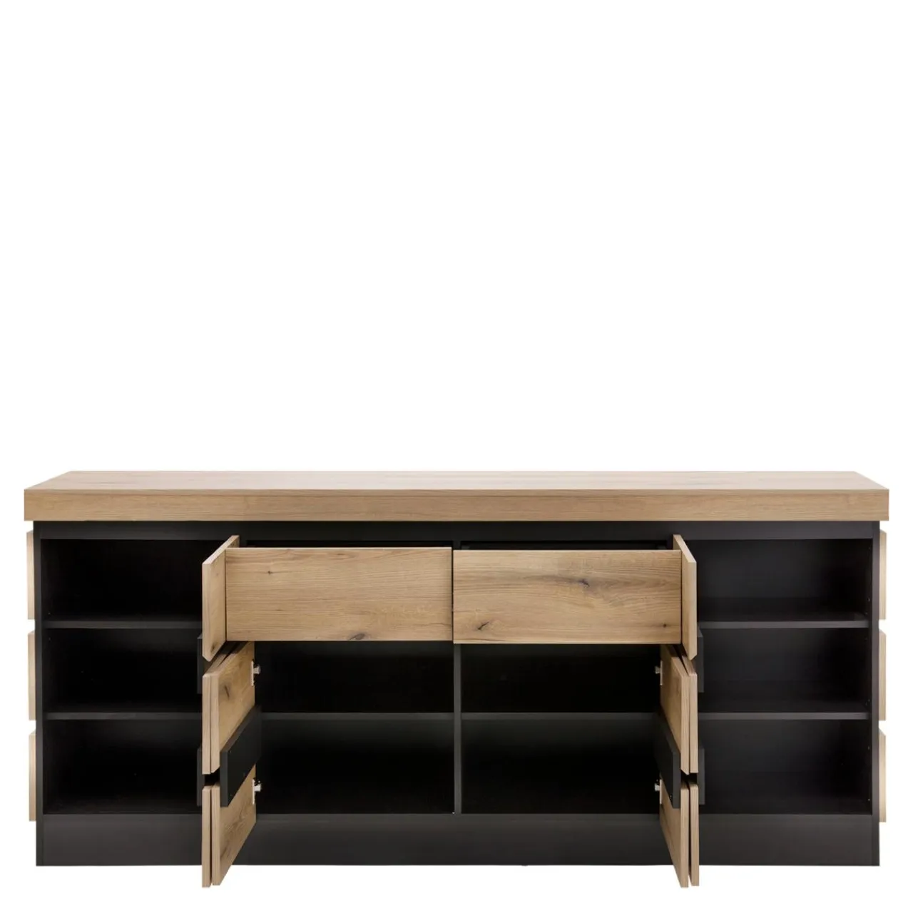 Ta komoda CORTE bez problemu pomieści nadprogramowe talerze, szklanki i kieliszki, bo ma aż 201,2 cm szerokości i 10 wnęk.