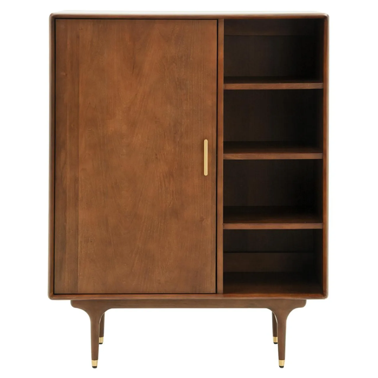 - Częściowo otwarta komoda posiada 4 otwarte wnęki.