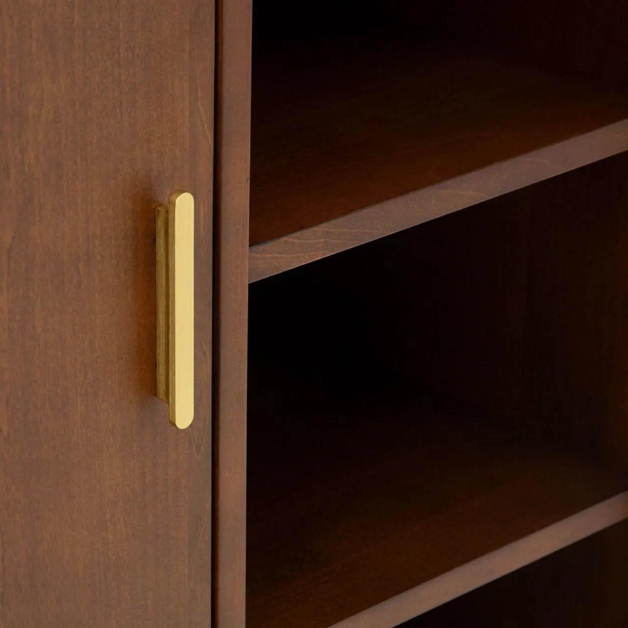 Minimalistyczne akcenty z mosiądzu w postaci uchwytów i końcówek nóżek podkreślają jakość wykonanych mebli.