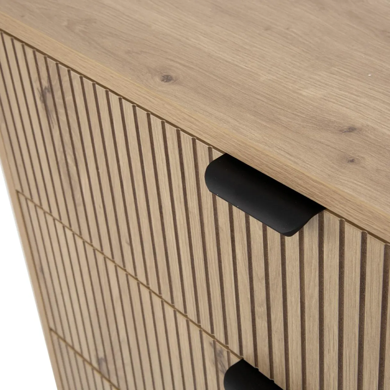 Przełam monotonię i ożyw wnętrze za pomocą ozdobnych żłobień na frontach – ryflowanie to jeden z najważniejszych trendów w projektach meblowych. Nieskomplikowana bryła i barwa jasnego drewna czyni kolekcję uniwersalną, pasującą do wiele stylów wnętrz.