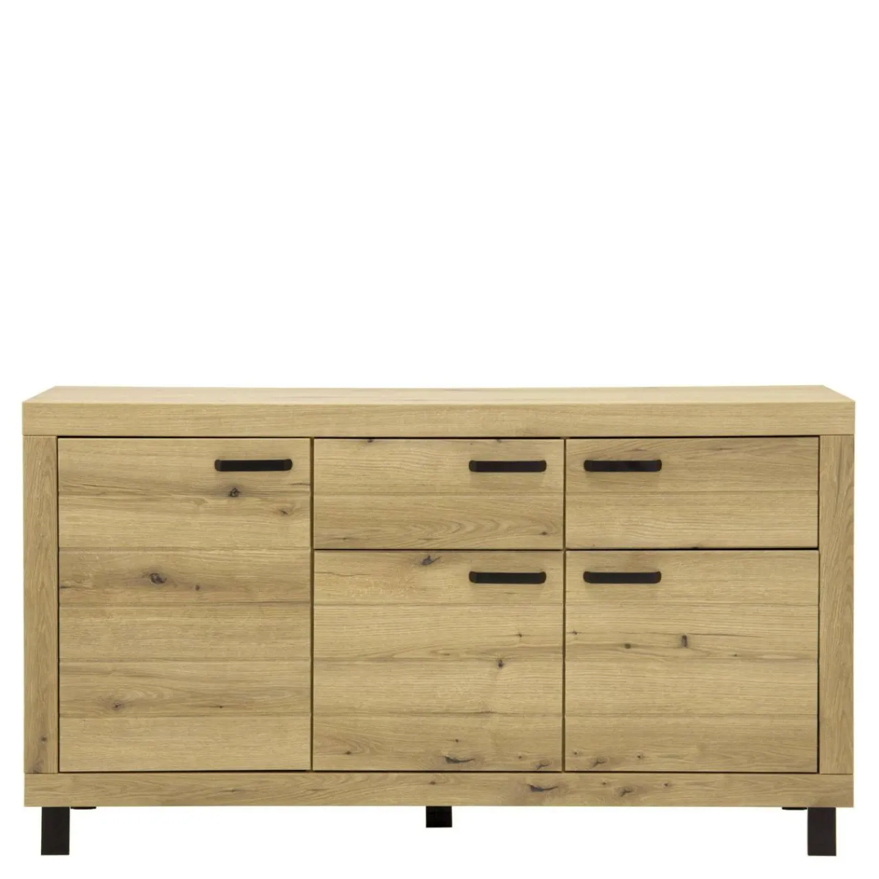 - Komoda wykończona jest laminatem oraz folią, imitującymi naturalny dąb w odcieniu Coast Evoke.