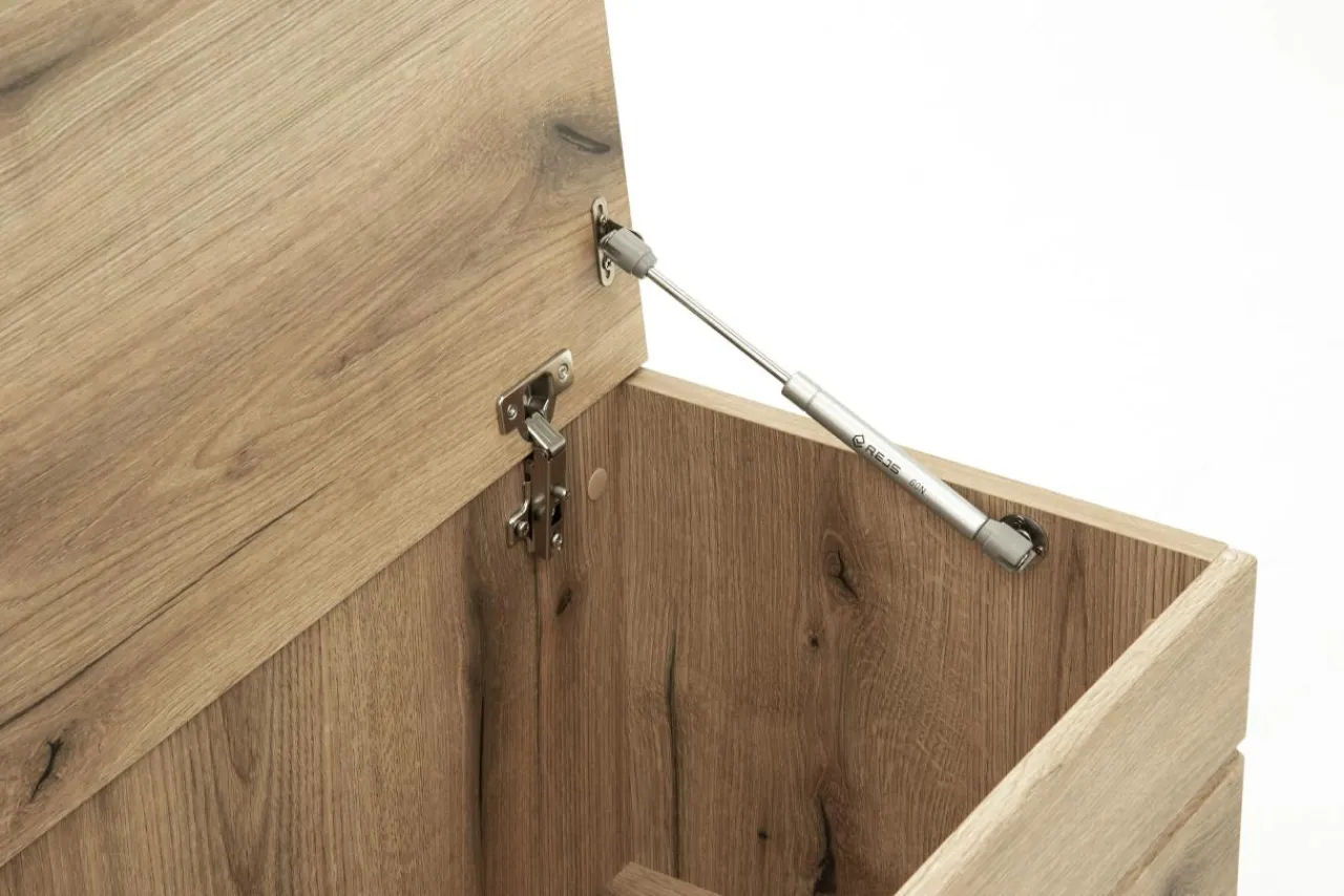- Dzięki wykończeniu w jasnym odcieniu przybrzeżnego dębu skrzynię DENVER możesz umieścić także we wnętrzu industrialnym.