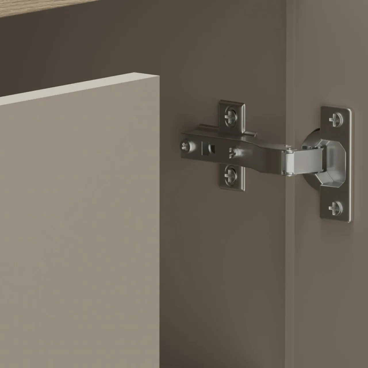 - Zawiasy z amortyzatorem – dzięki nim drzwi zamykają się delikatnie i bez trzaskania.