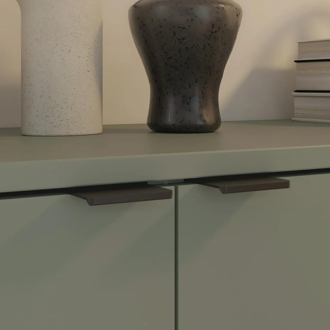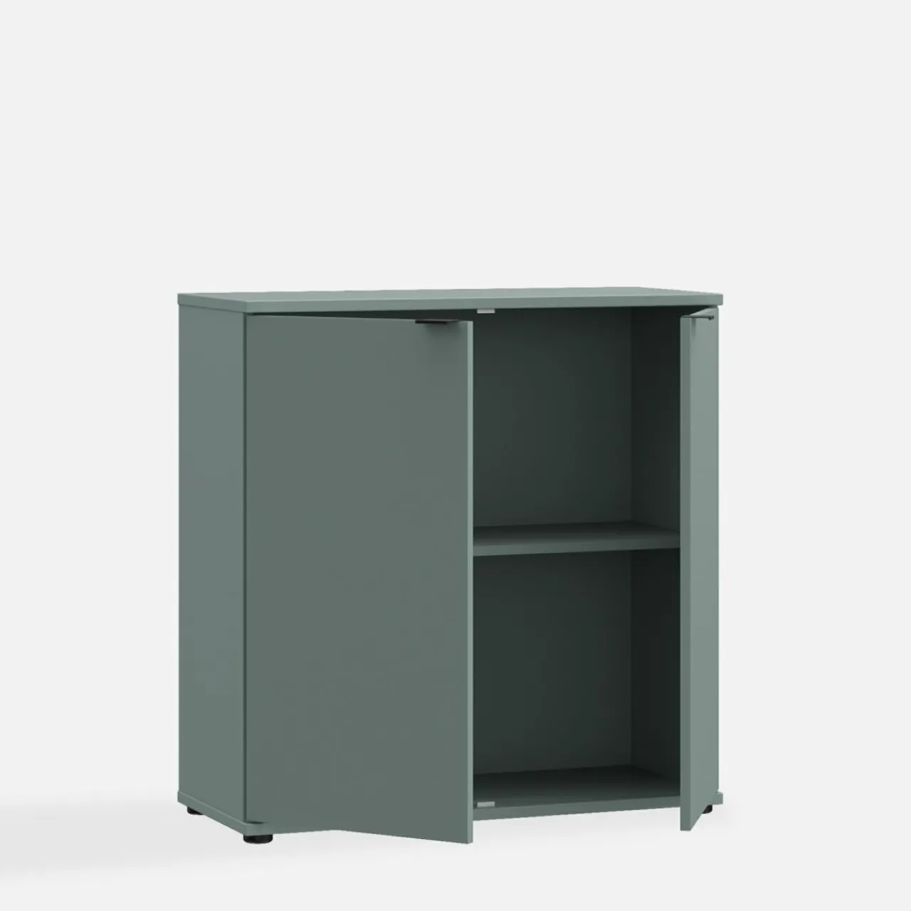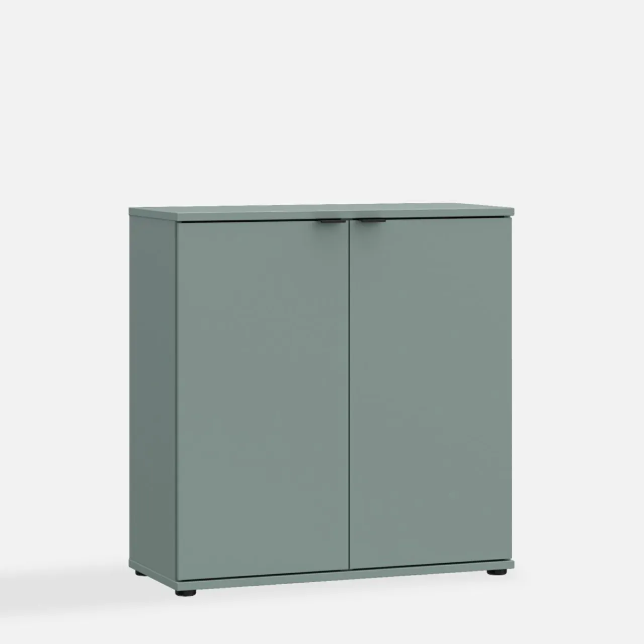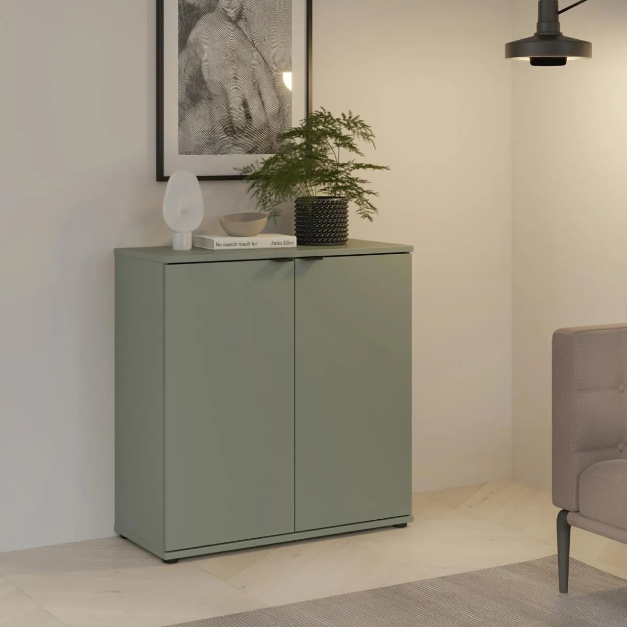 Prosta komoda GANYMEDE w odcieniu szałwi to rozwiązanie do wnętrz w naturalnych tonacjach. Dwudrzwiowy układ zapewnia wygodne przechowywanie.