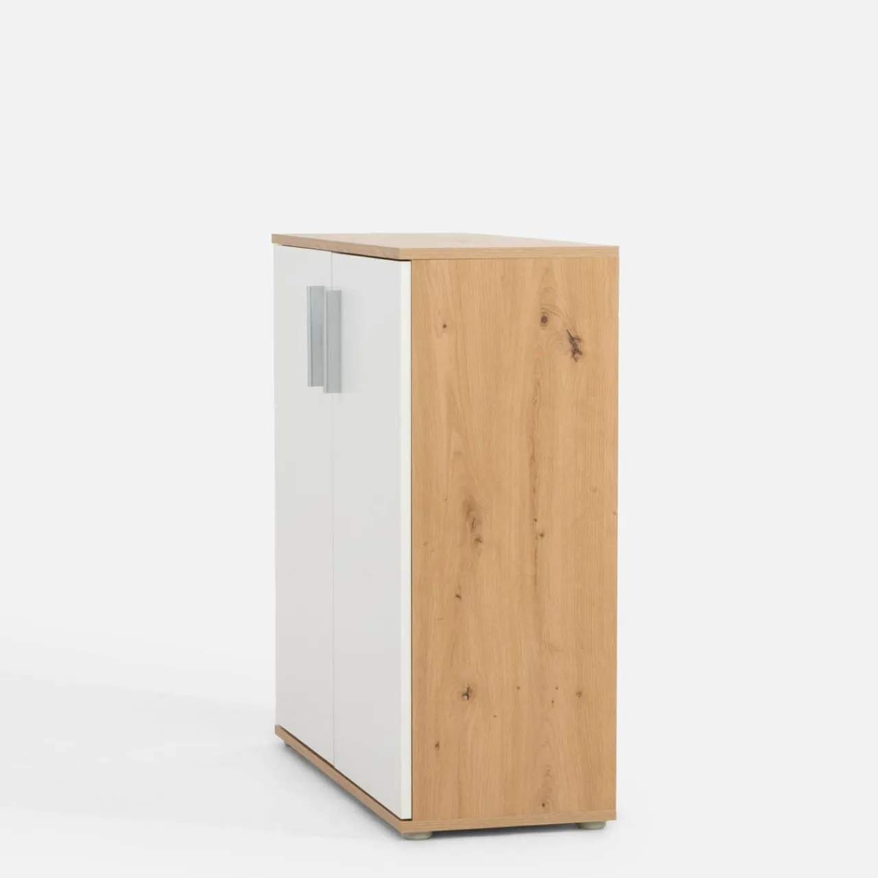 Komody IKOLI łączą nowoczesny design z praktycznym przechowywaniem. Jasne fronty i korpus w odcieniu dębu artisan dodają wnętrzu lekkości. Różne układy – od prostych dwudrzwiowych modeli po warianty z szufladami – sprawdzą się w salonie, sypialni czy biurze.