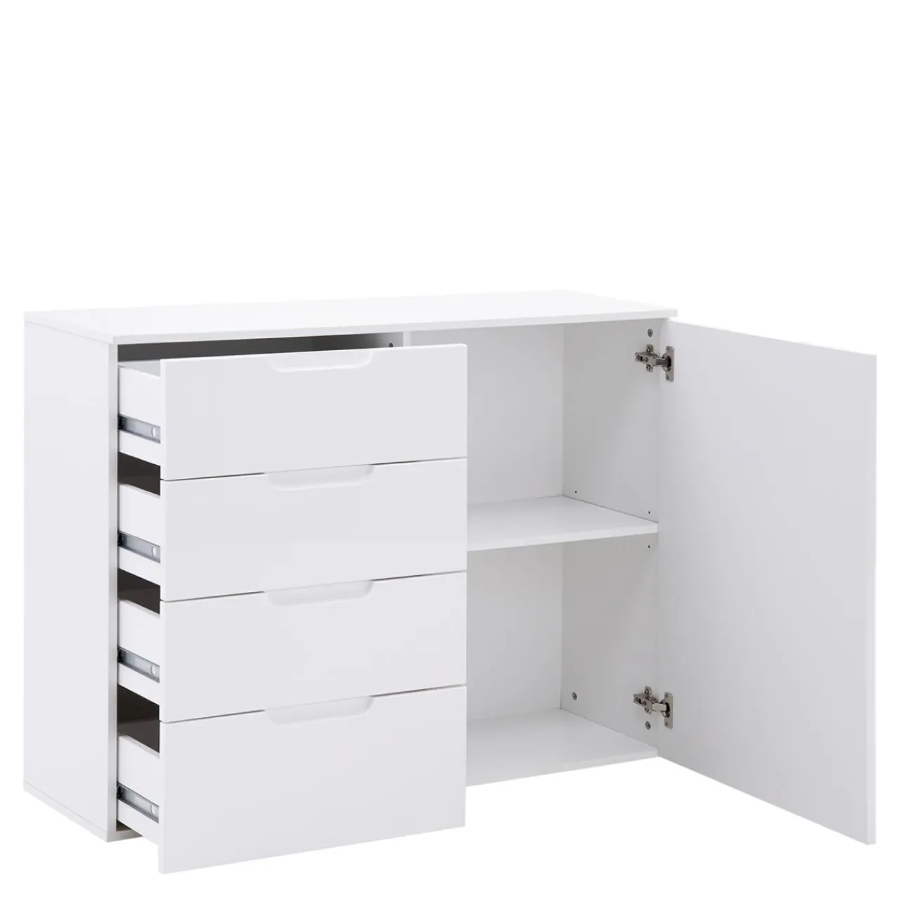 - Komoda posiada 4 szuflady – idealne na przechowywanie bielizny lub dokumentów.