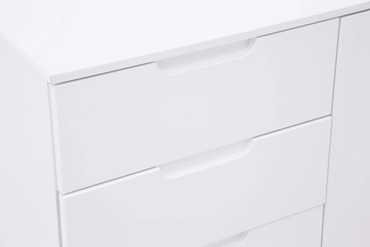 Komoda posiada frezowane uchwyty, a brak nóżek sprawia, że łatwej będzie Ci utrzymać czystość.
