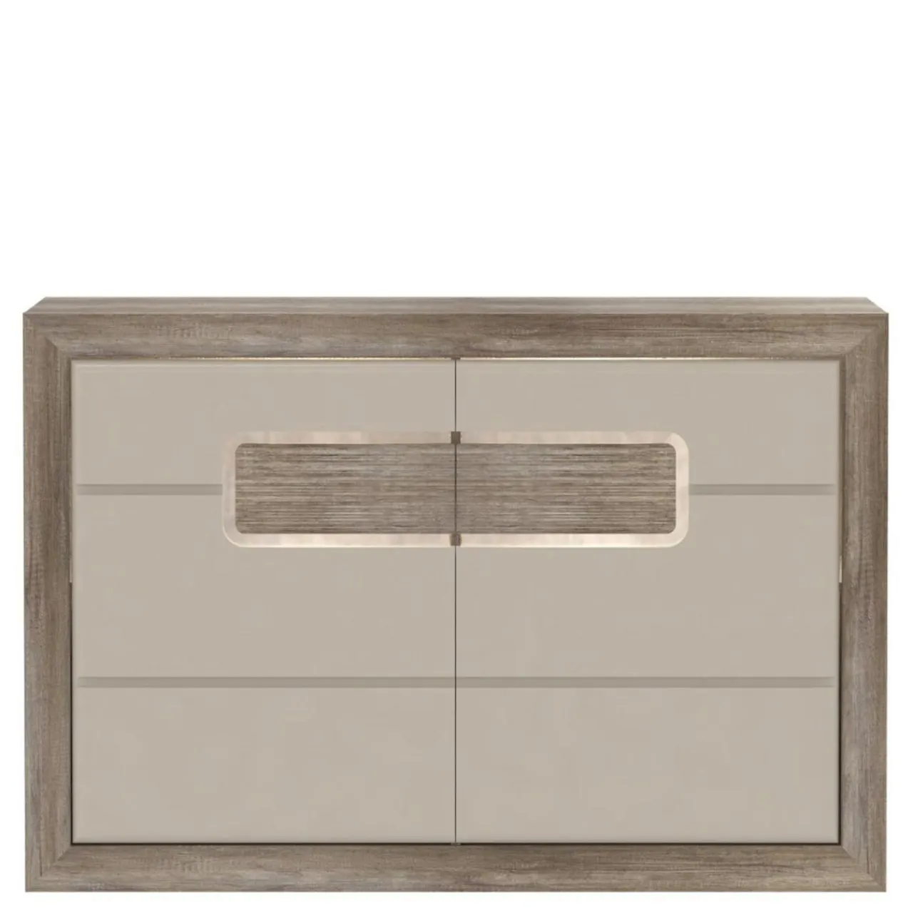 Fronty wykonano z płyty MDF i wykończono folią PCV. Charakterystycznym elementem kolekcji są niestandardowe uchwyty, które świetnie komponują się z całością.