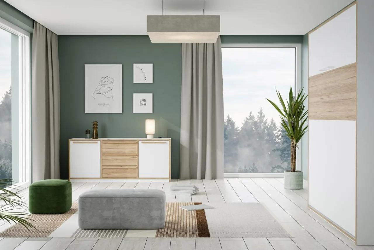 Komodę S-ROOM zmieścisz w niewielkim pokoju lub kawalerce. Pomieścisz w niej drobne przedmioty, akcesoria do pokoju dziennego lub dekoracje.