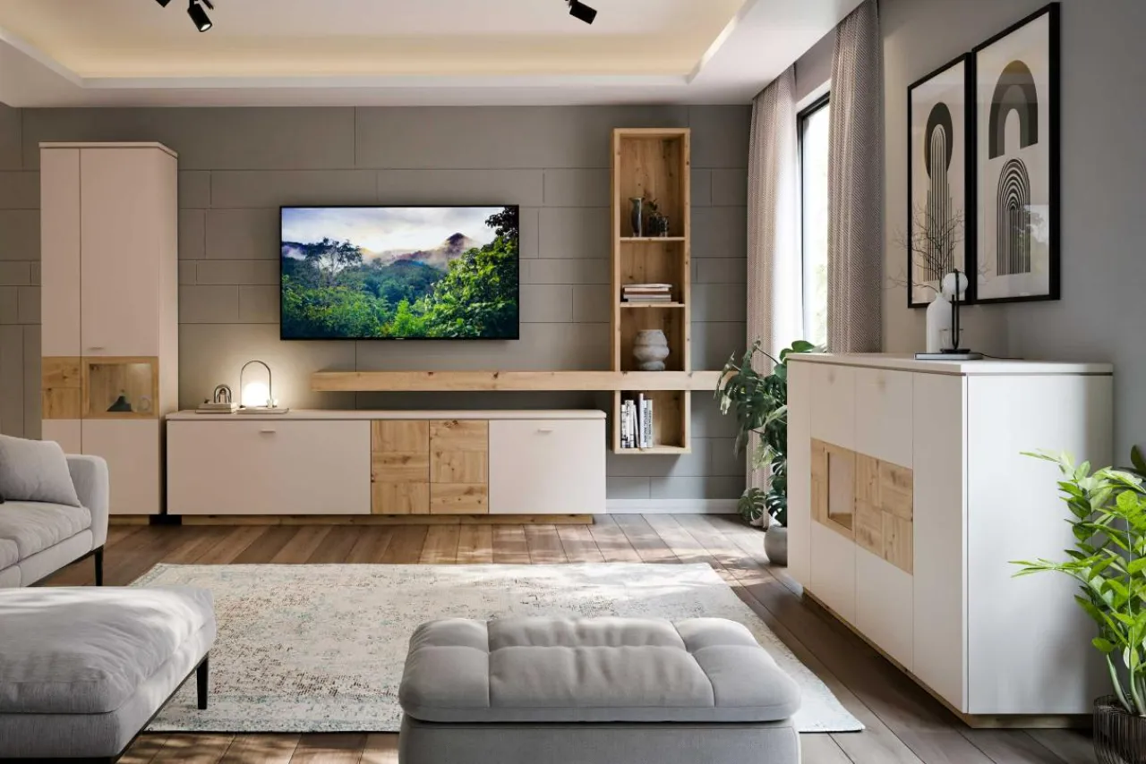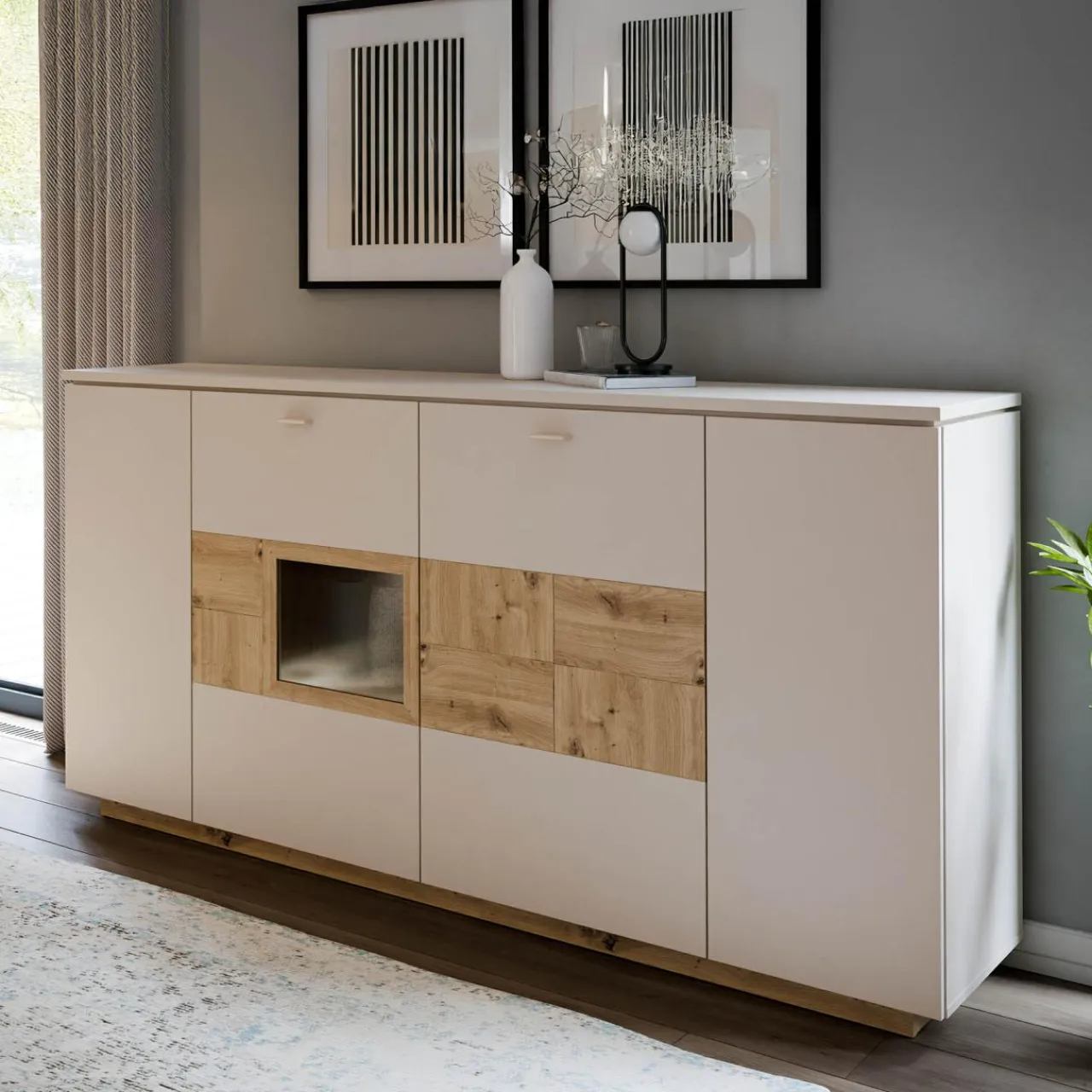 Komoda z witryną LOUOTO + Oświetlenie 1-pkt, z wył, barwa ciepła