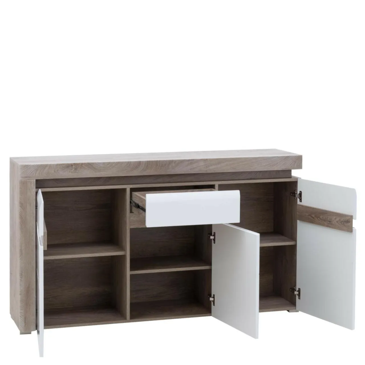 W drzwiach zamontowano zawiasy z systemem cichego domyku, dzięki czemu drzwi nie hałasują podczas zamykania.