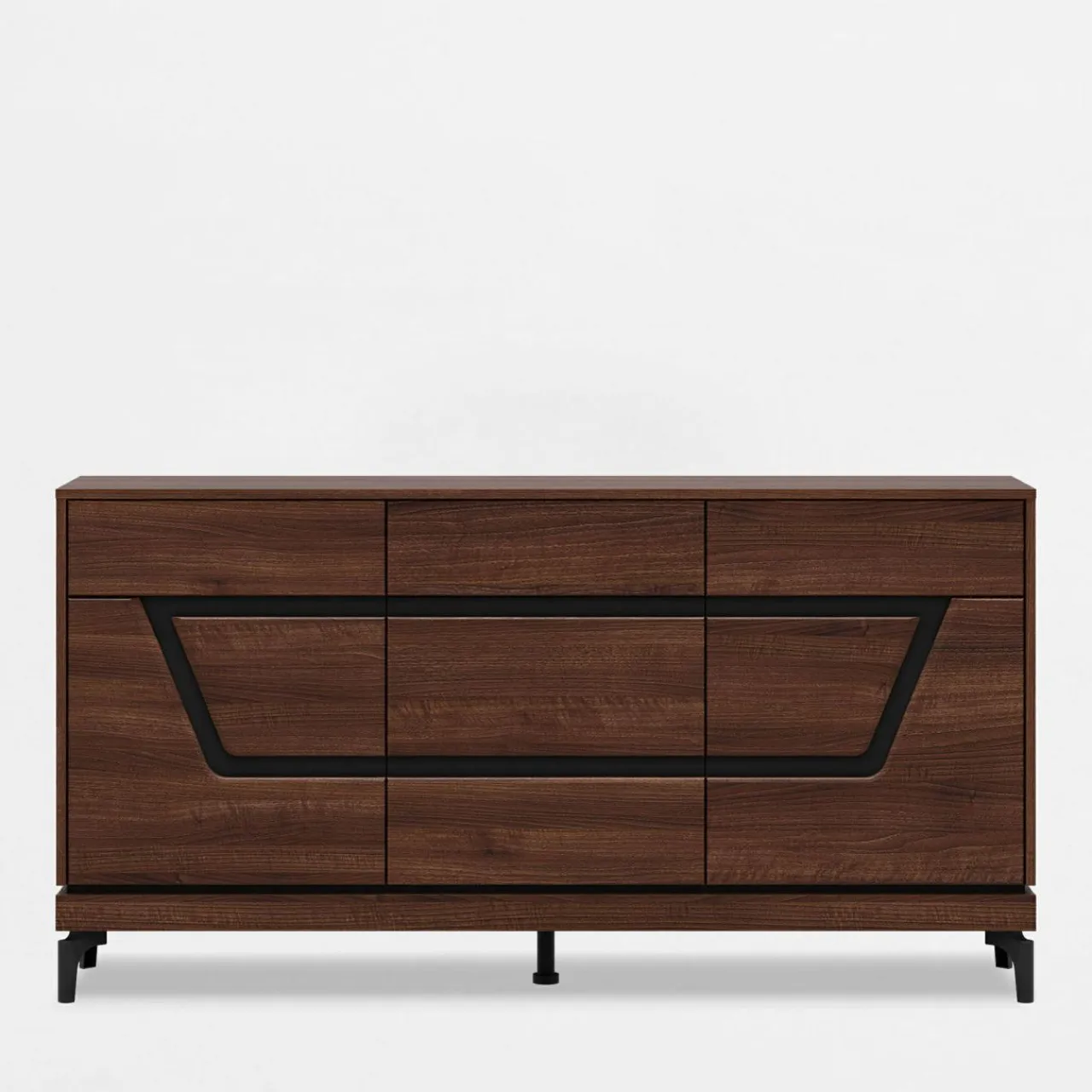 - Meble wykończone są laminatem z rysunkiem drewna. Ciemny, orzechowy kolor posiada niepowtarzalny układ słojów na każdym meblu.