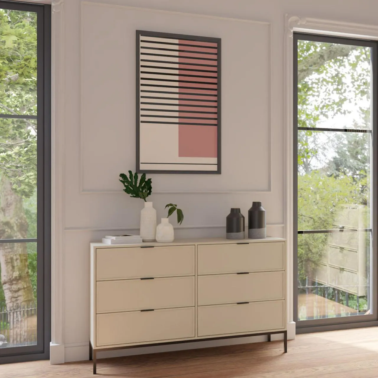 Komoda z szufladami CARMEN to świetne rozwiązanie do nowoczesnych wnętrz, idealnie wpisujące się w styl skandynawski lub minimalistyczny.