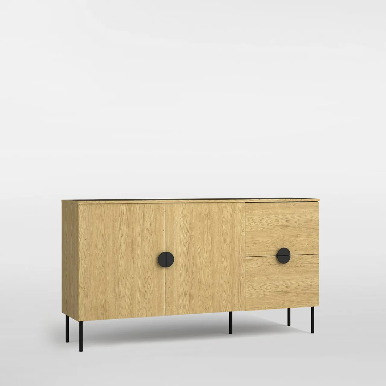 - Meble charakteryzuje wykończenie w odcieniu dębu baltic. Rysunek drewna tworzy przytulny klimat w pomieszczeniu