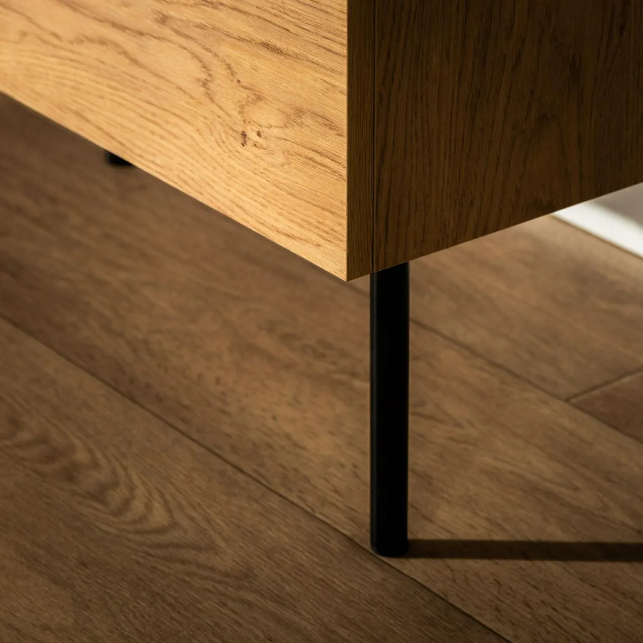 - Pod wysokimi nóżkami z łatwością utrzymasz porządek. Pod spodem zmieści się odkurzacz lub robot sprzątający.