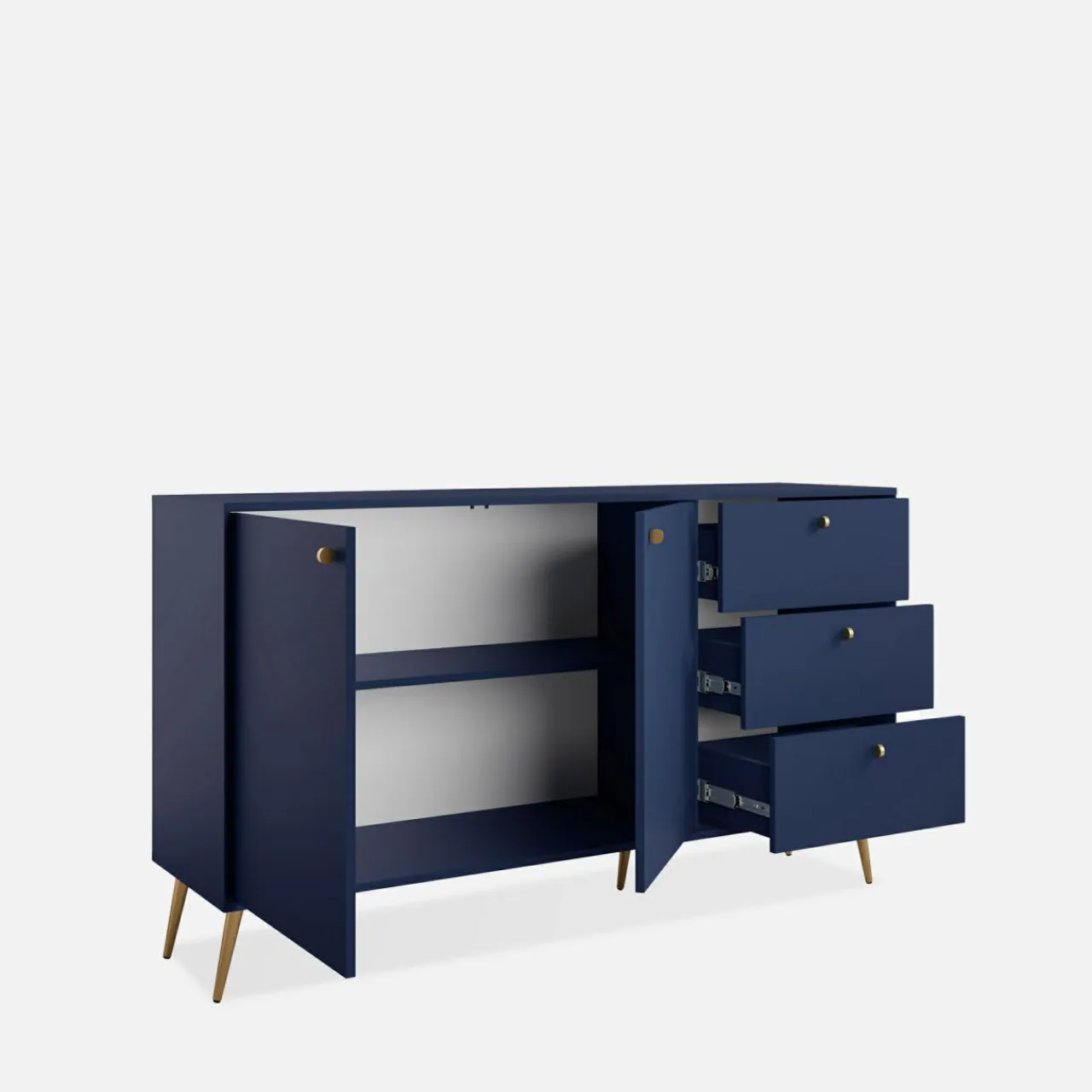 - Złote uchwyty i nóżki dopełniają mebel, dodając elegancji.
