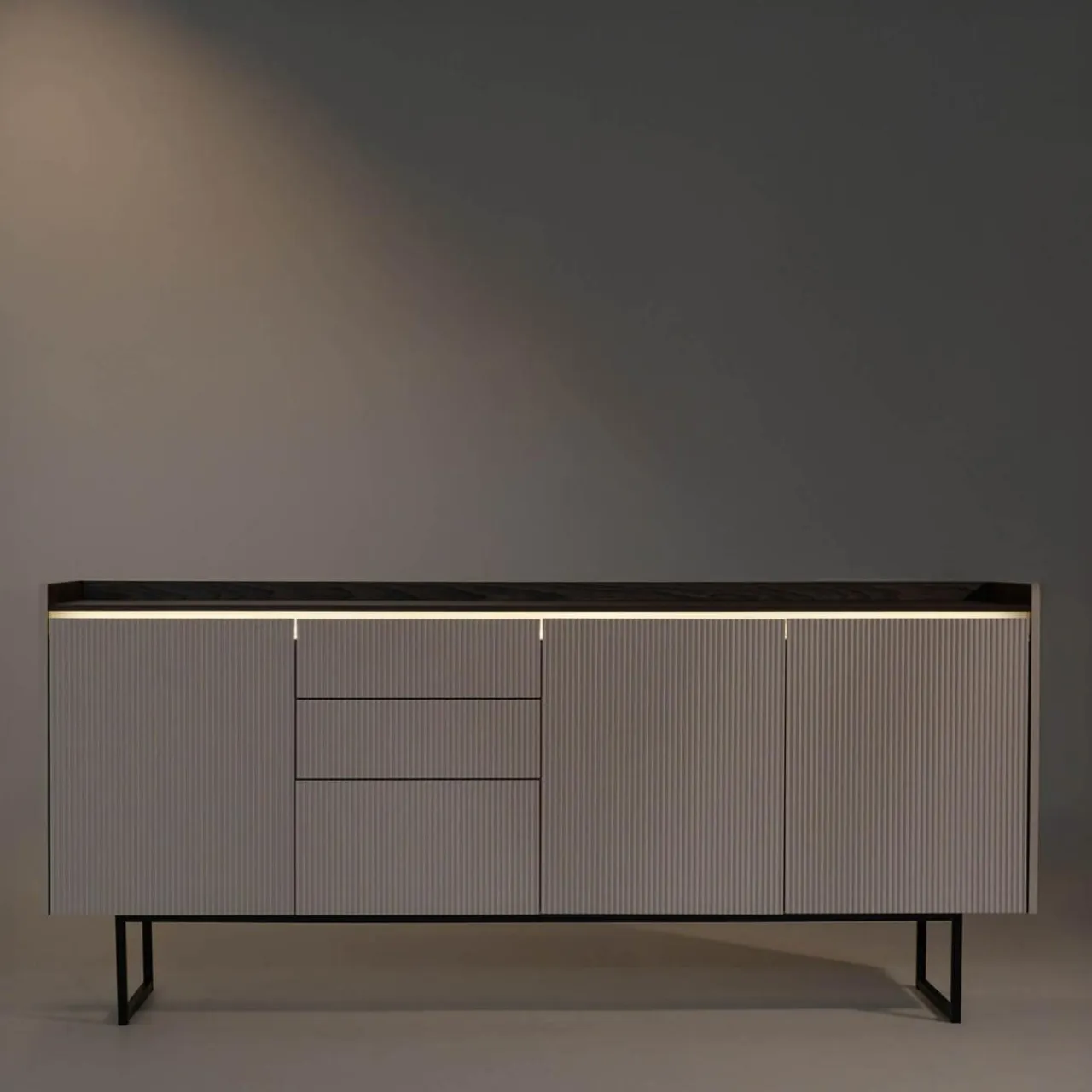 Komoda LAGO o szerokości 192 cm świetnie sprawdzi się w dużym salonie, gdzie będzie miała szansę się zaprezentować. Półki świetnie sprawdzą się do przechowywania kompletów zastawy, zapasowych obrusów czy pościeli, natomiast szuflady będą odpowiednie na płaskie teczki czy inne drobiazgi.