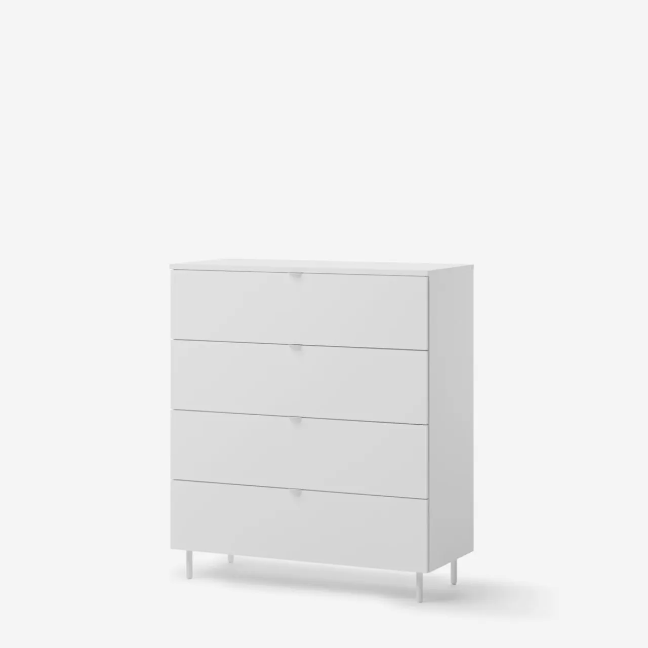 Komoda z szufladami MILA na metalowych nóżkach w białym wykończeniu to elegancki i praktyczny mebel, który wprowadza świeżość i lekkość do wnętrza. Jej neutralna kolorystyka sprawdzi się w aranżacjach skandynawskich, nowoczesnych lub minimalistycznych, doskonale łącząc się z odcieniami drewna, szarościami czy pastelami.