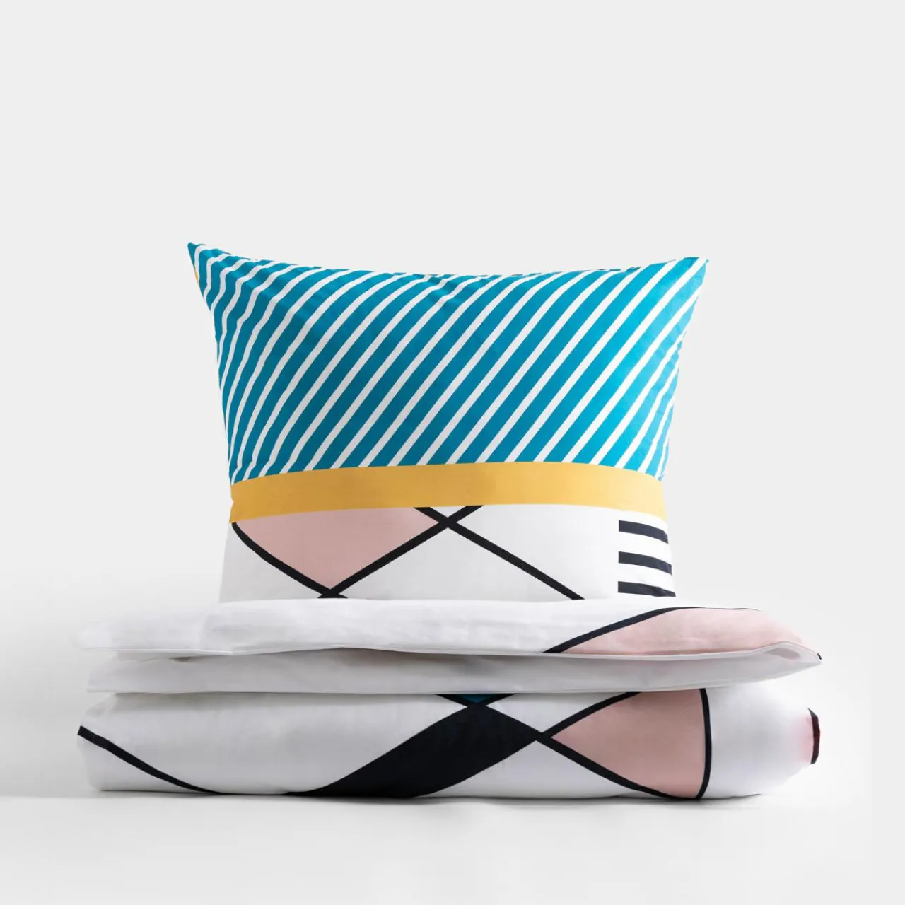 - Komplet pościeli CENIT może stać uwieńczeniem aranżacji w stylu art deco – trójkąty i trapezy stworzą spójny wystrój razem z ażurowymi lampami, geometrycznymi kloszami i foremnymi meblami.