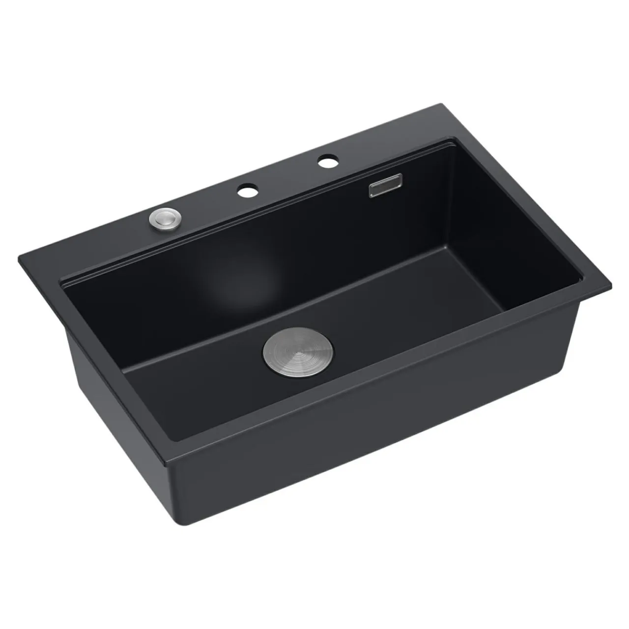 Materiał GraniteQ to połączenie drobnych cząsteczek granitu (75-80%) za pomocą wysokiej jakości spoiwa (20-25%), dzięki czemu zlewozmywak posiada wytrzymałość i odporność.