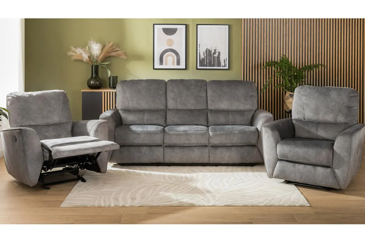 Komplet wypoczynkowy ZENNO wykończony jest zamszową tkaniną. Nierówności w odcieniach sprawiają, że komplet prezentuje się wyjątkowo.