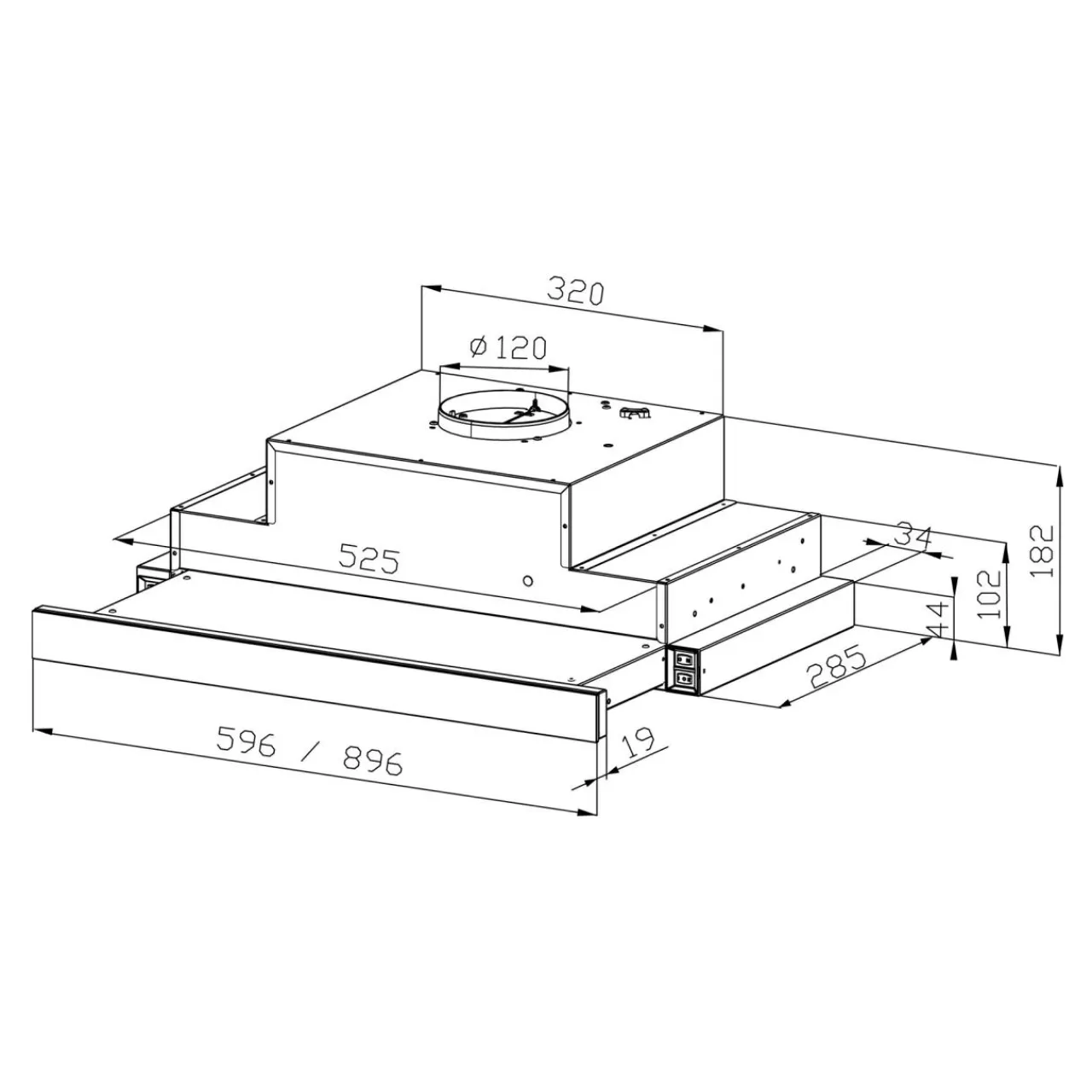 - Tryb pracy wyciąg lub pochłaniacz (wymagany filtr węglowy).