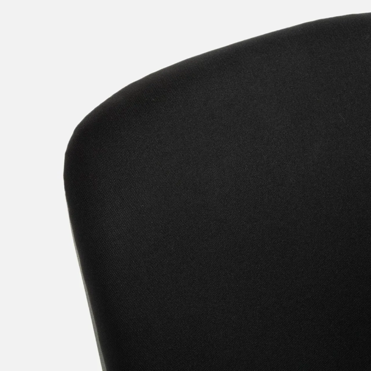 - Tapicerka krzesła została wykonana z tkaniny w kolorze czarnym.
