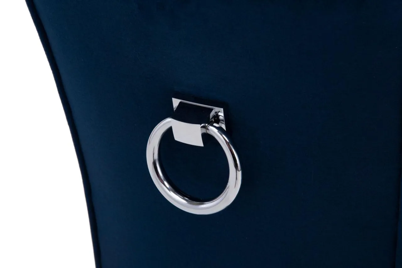 Stelaż i nogi krzesła VERMONT z drewna bukowego urokliwie dopełniają ciemnogranatową tapicerkę.