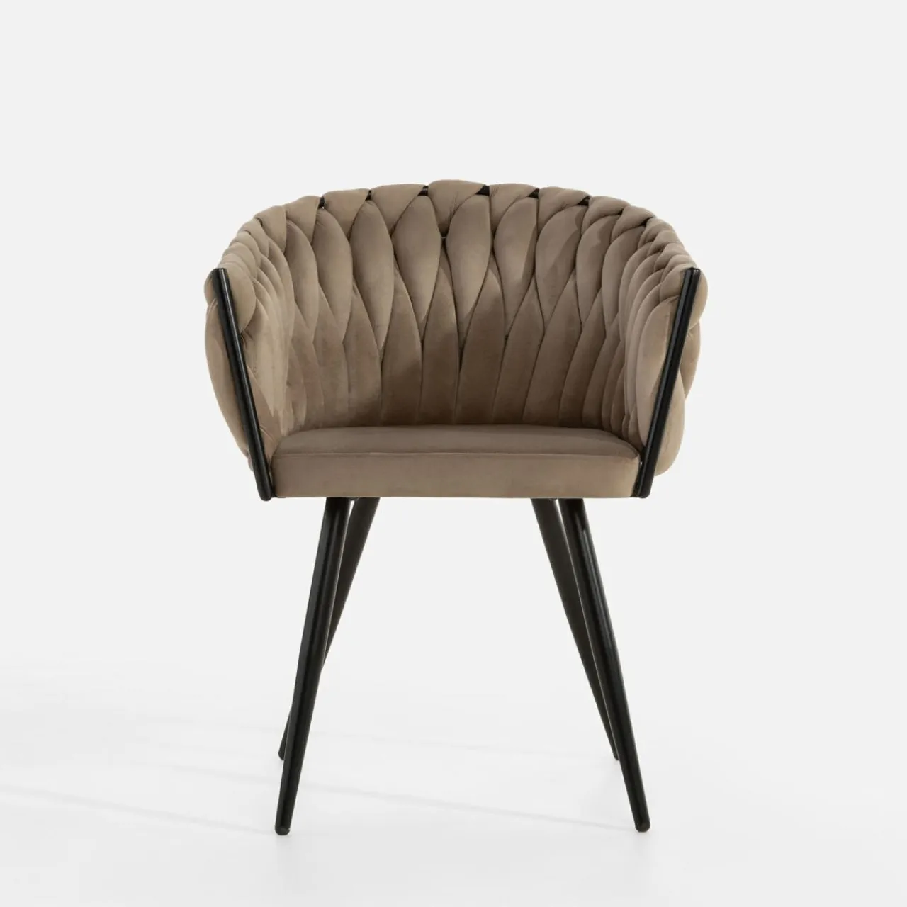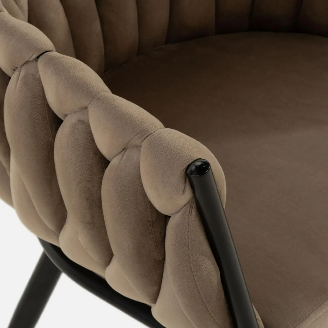 Szukasz eleganckiego krzesła z pazurem? LIANA przykuwa wzrok welurową plecionką i zgrabnymi, czarnymi nogami. Tapicerowane krzesło będzie dodatkiem, obok którego nie sposób przejść obojętnie i doskonale sprawdzi się w aranżacjach w stylu retro lub art deco.
