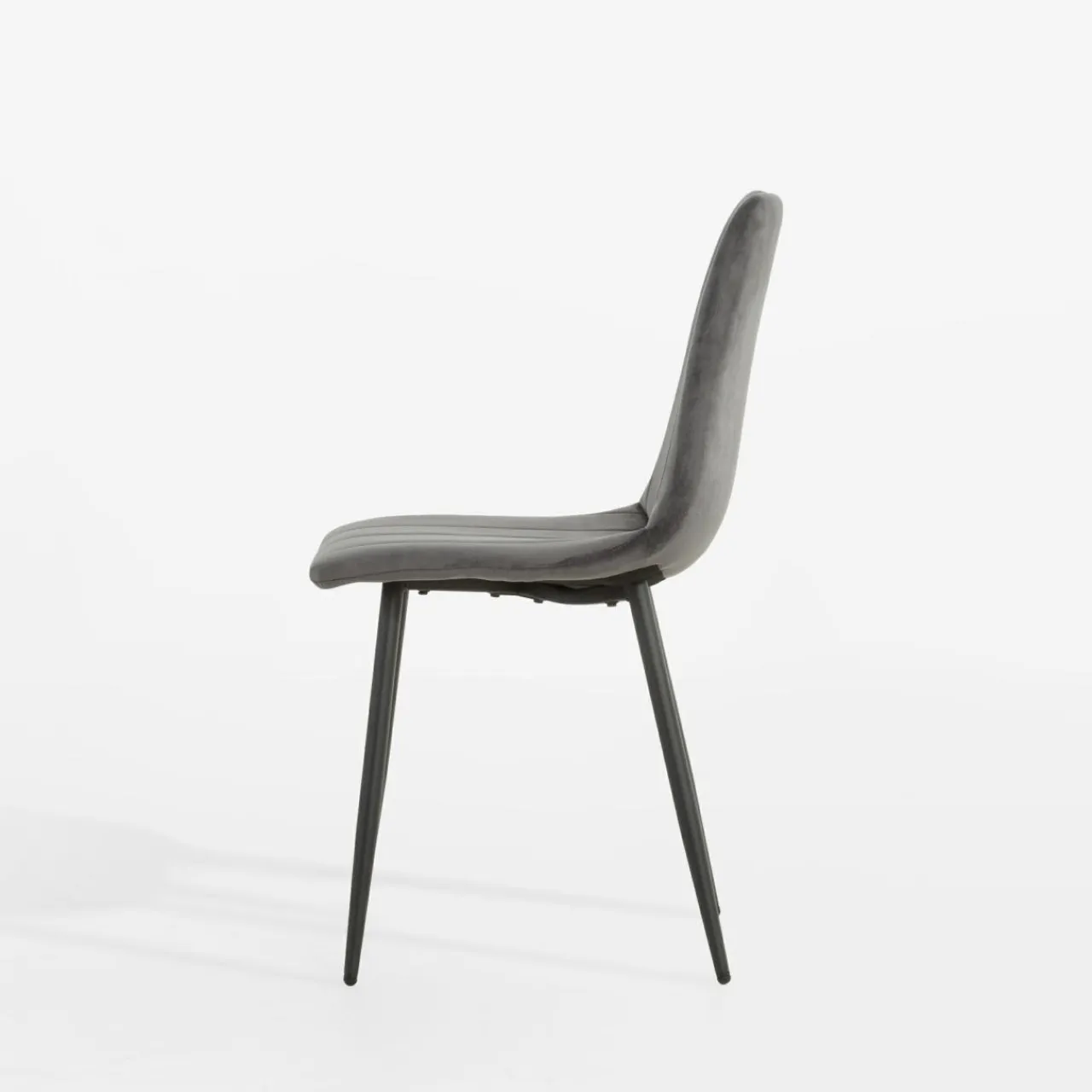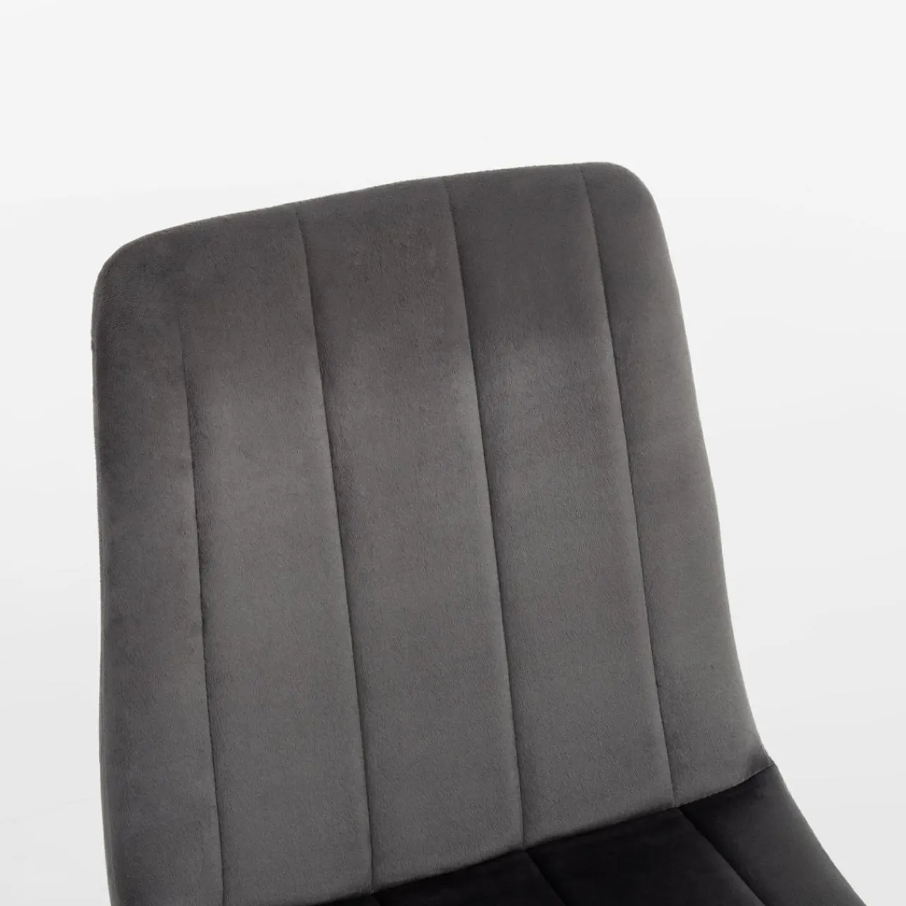 - Szary kolor tapicerki krzesła uzupełni aranżację wnętrza, w której główną rolę odgrywać będą eleganckie barwy.