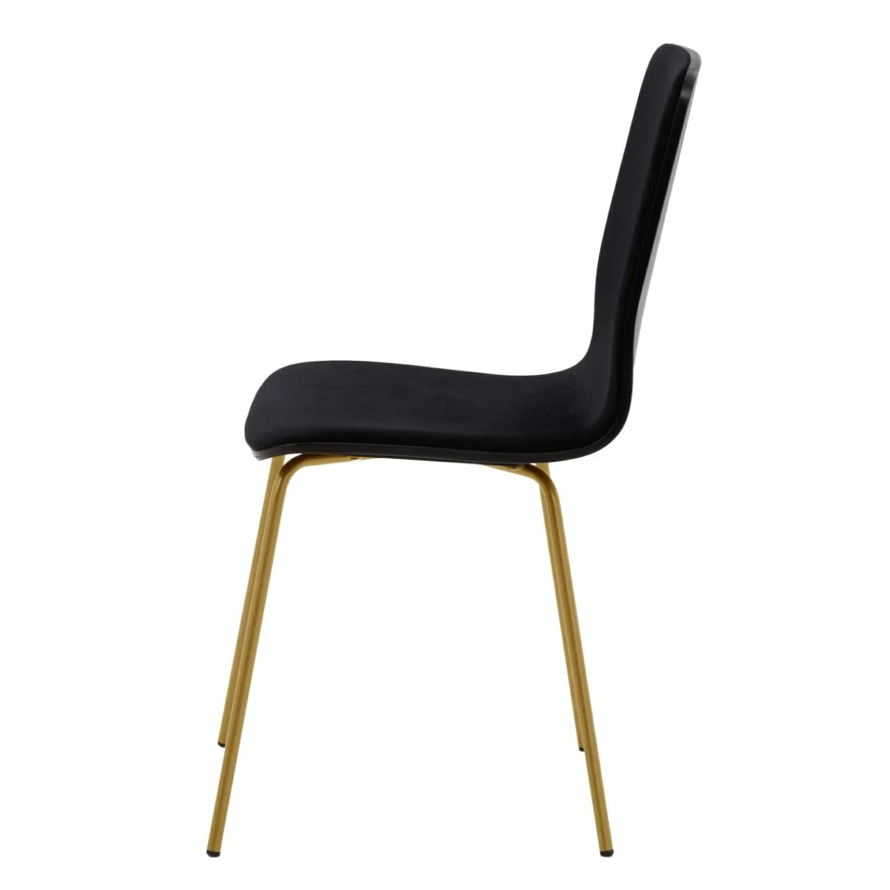 Elegancki czarny welur został połączony z czarnym oparciem i metalowymi nogami w kolorze starego złota. Krzesło tworzy elegancką kompozycję, która wzbogaci Twoje wnętrze o luksusowe odczucia.