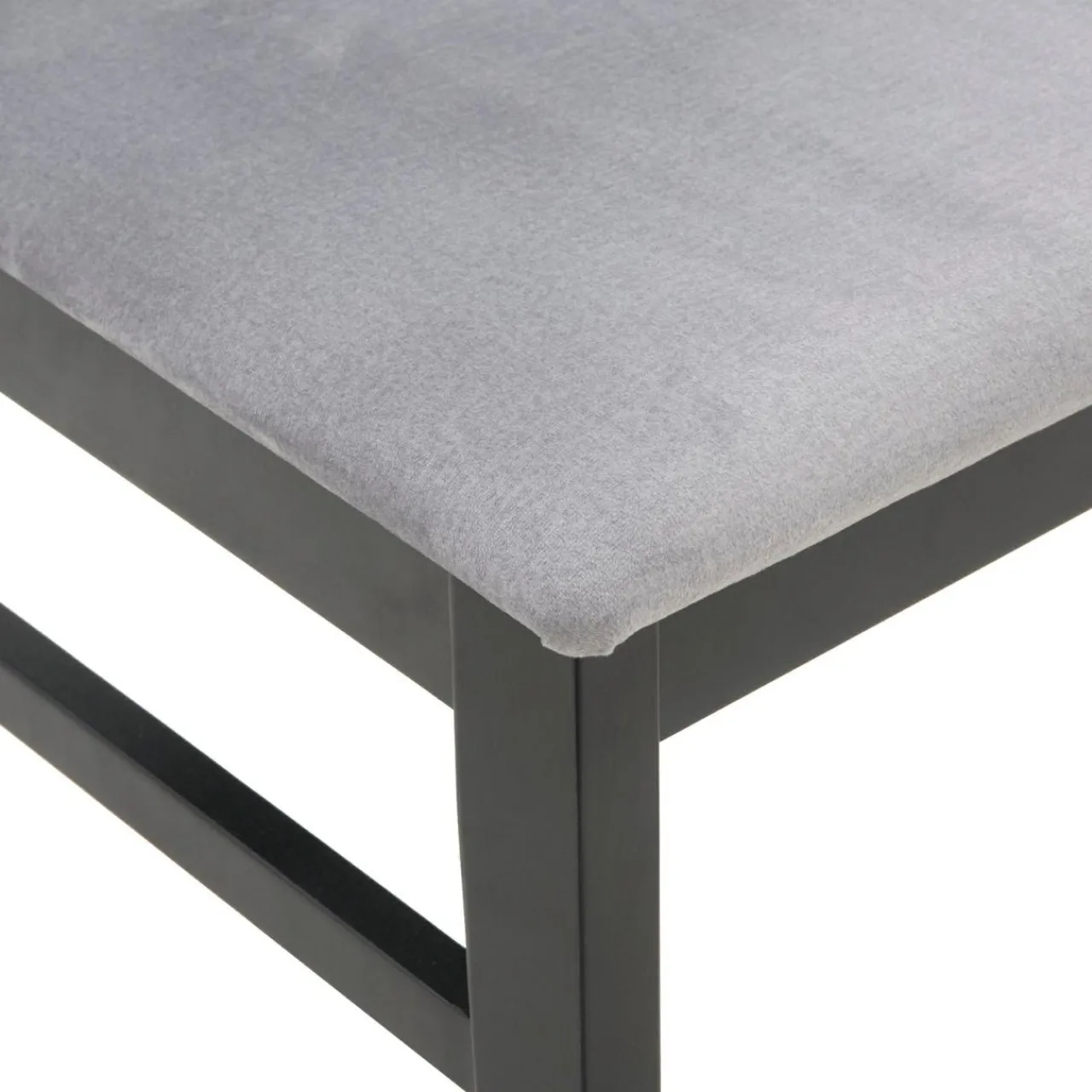 - Siedzisko krzesła ZAYDEN pokryto tkaniną przypominającą welur, w jasnym, szarym kolorze.