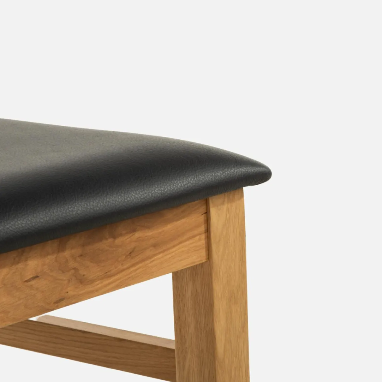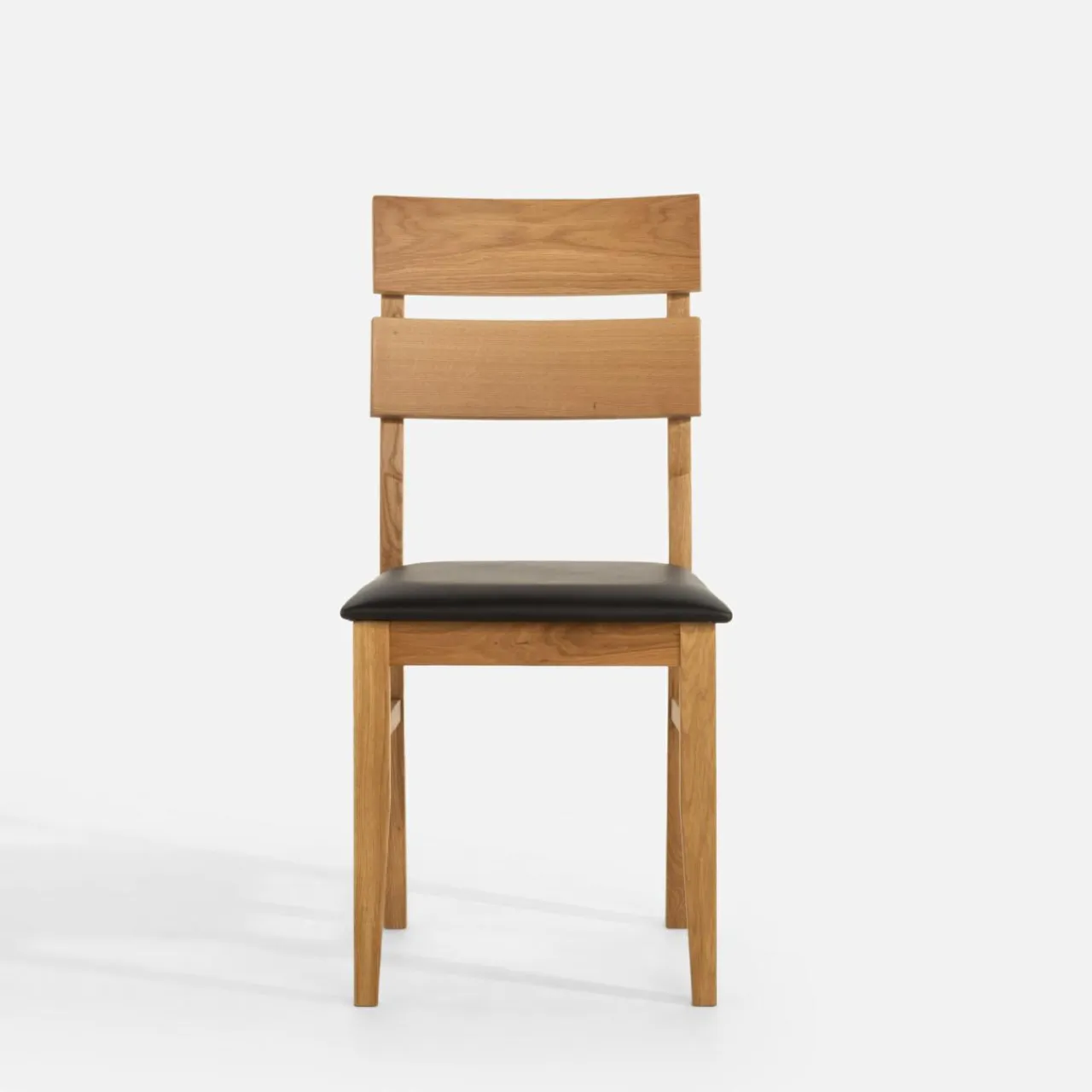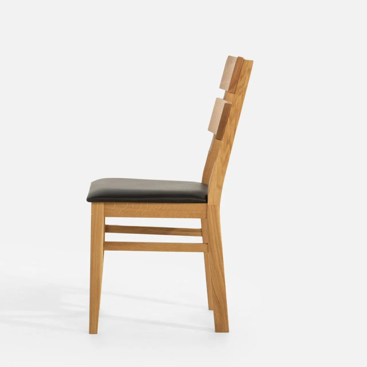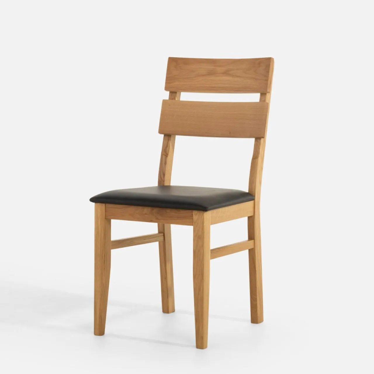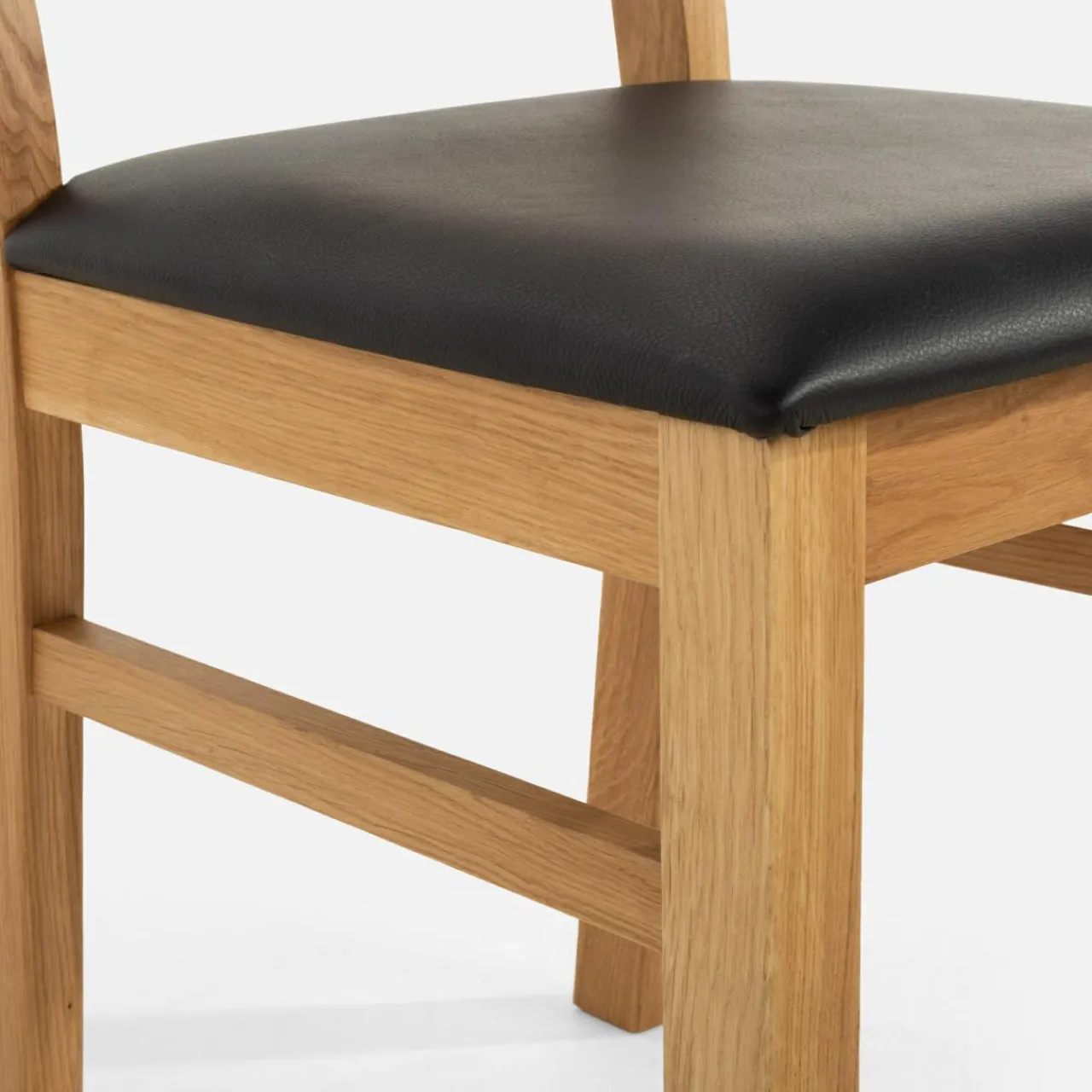 Krzesło LEVKE łączy w sobie jasne drewno dębowe i czarną skórę naturalną na siedzisku – wpasuje się w zarówno klasyczne aranżacje jadalni z elementami drewna jak i te bardziej nowoczesne czy industrialne.