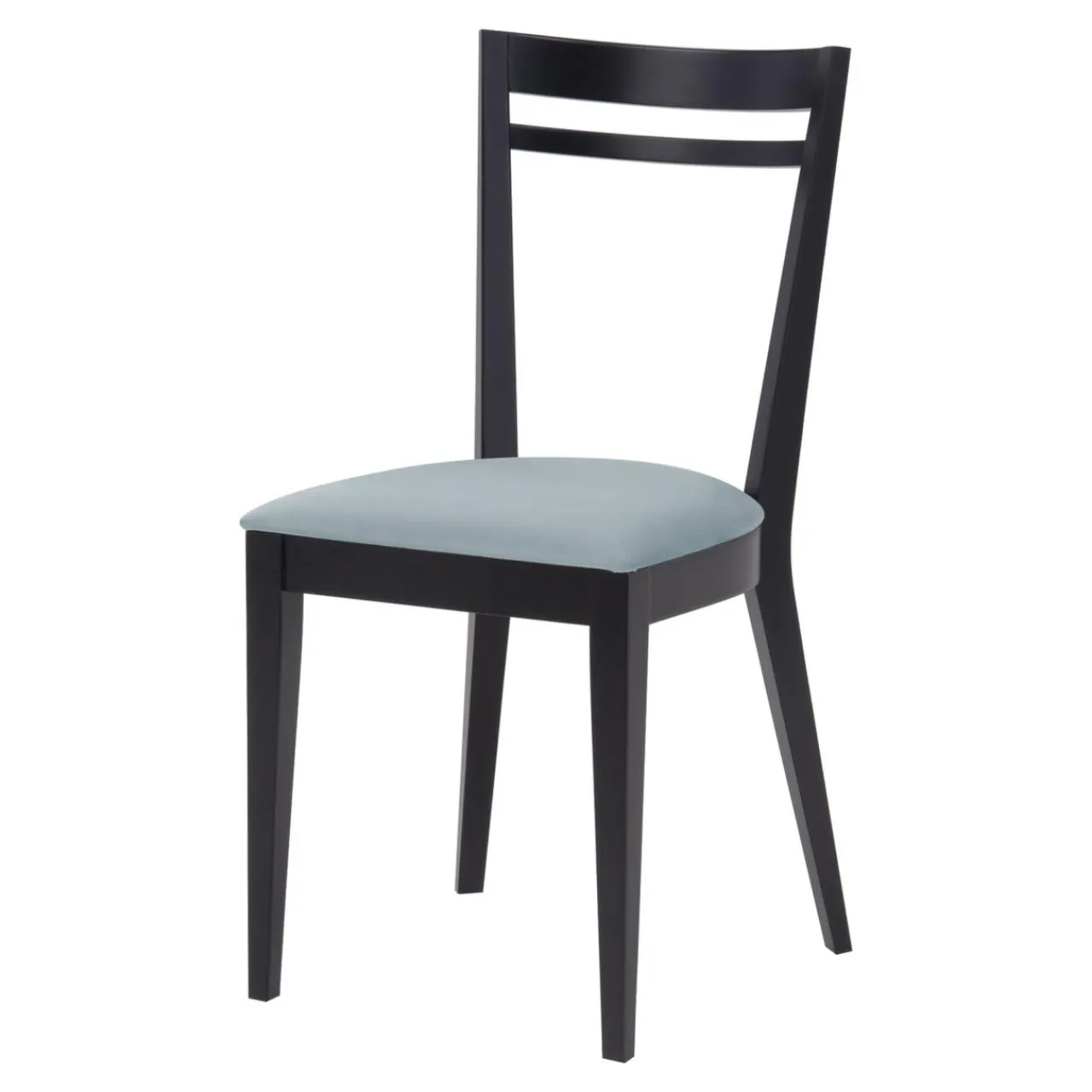 - Krzesło ERIN wykonano z bukowego drewna i zabezpieczono czarną lakobejcą.