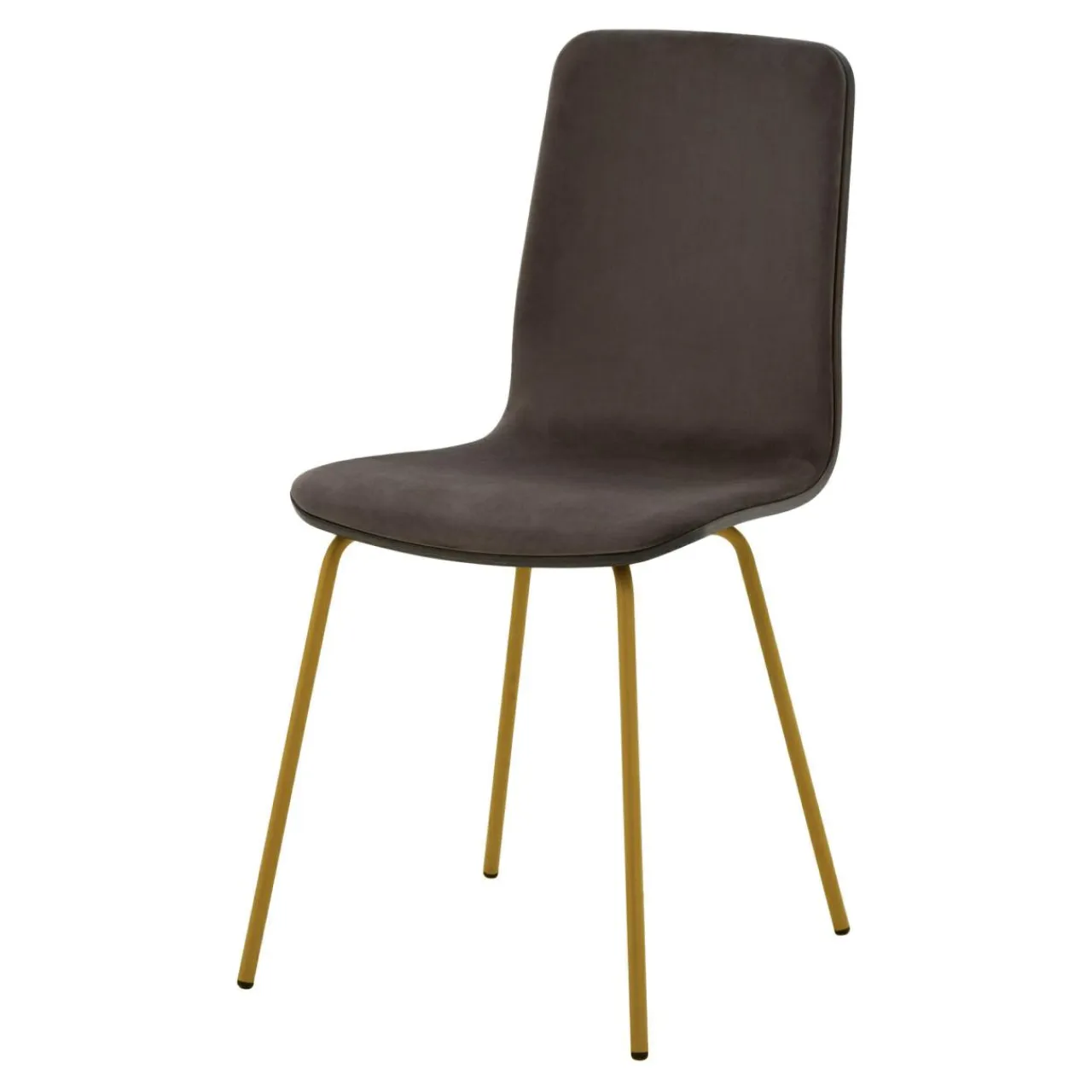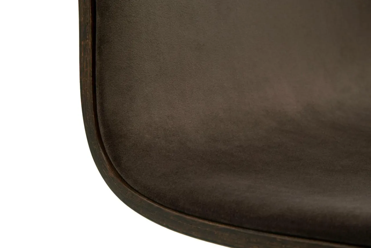 - Krzesło posiada miłą w dotyku welurową tapicerkę w kolorze brązowym.