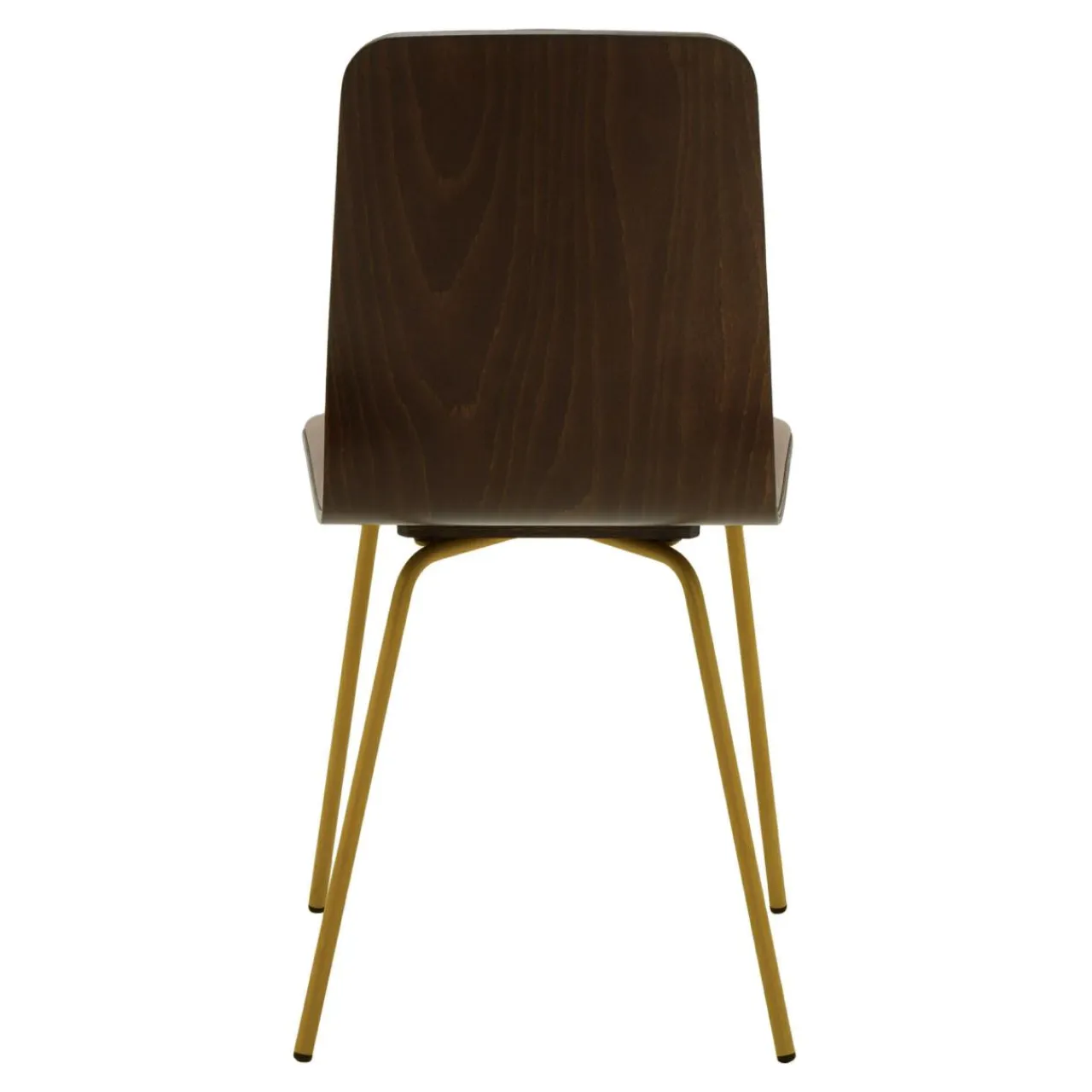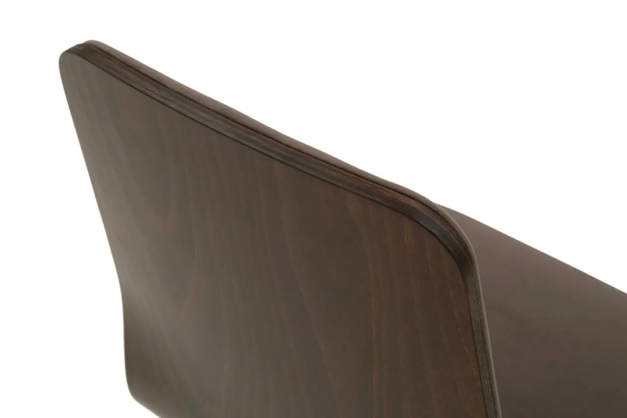 - Siedzisko i oparcie krzesła wykonano ze sklejki. Sklejkę pokryto bejcą w kolorze orzecha.