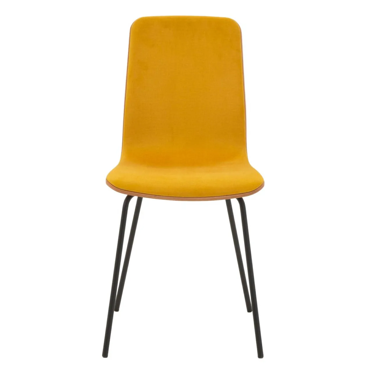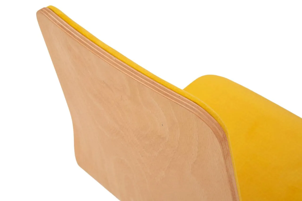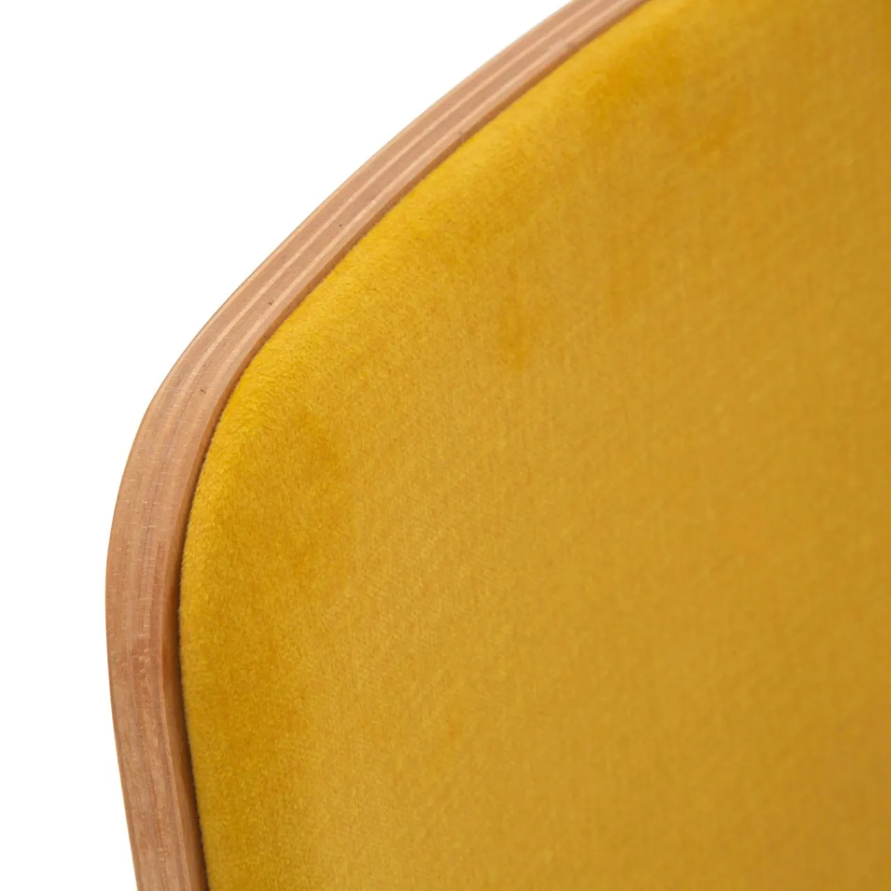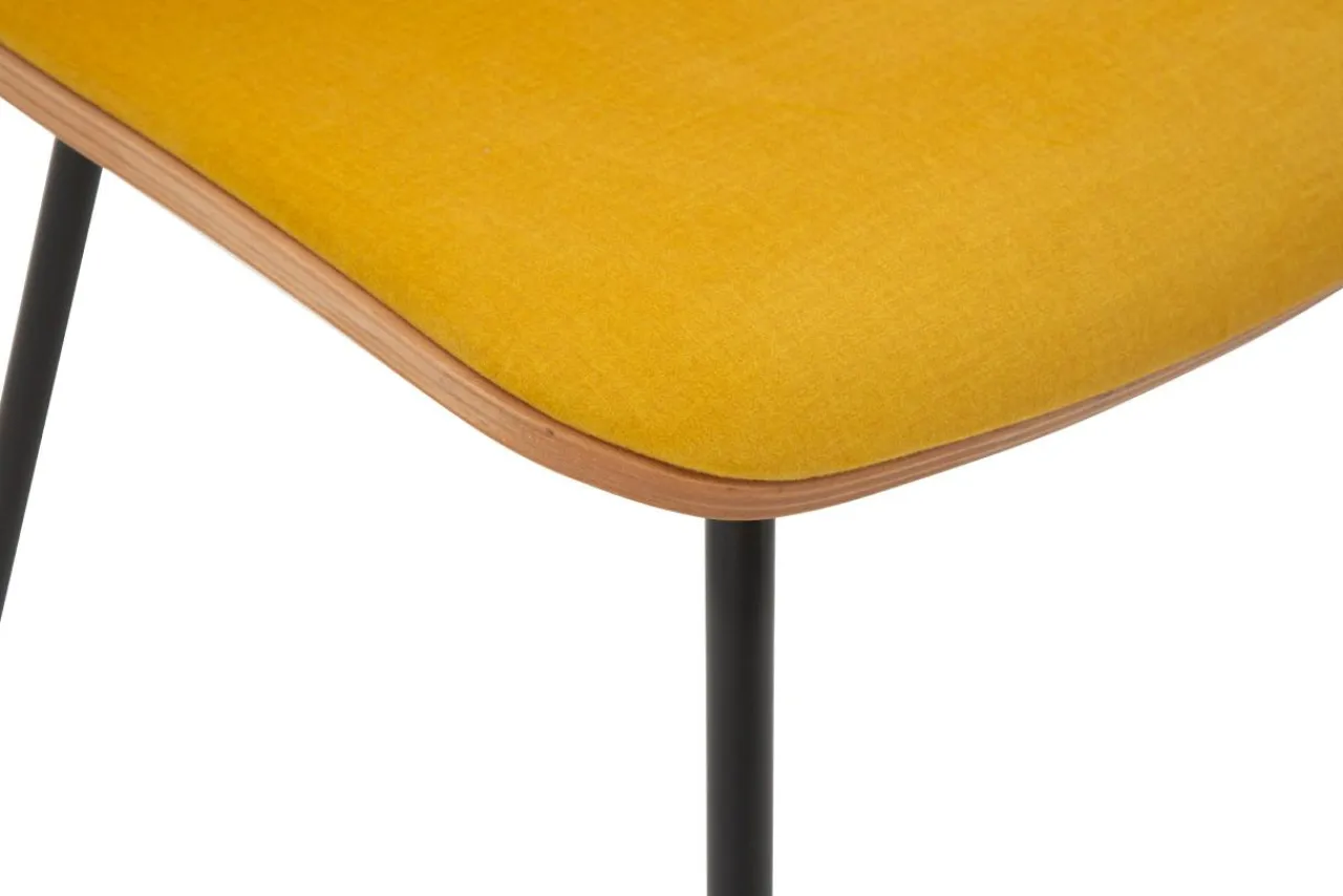 - Krzesło posiada miłą w dotyku welurową tapicerkę w kolorze miodowym.