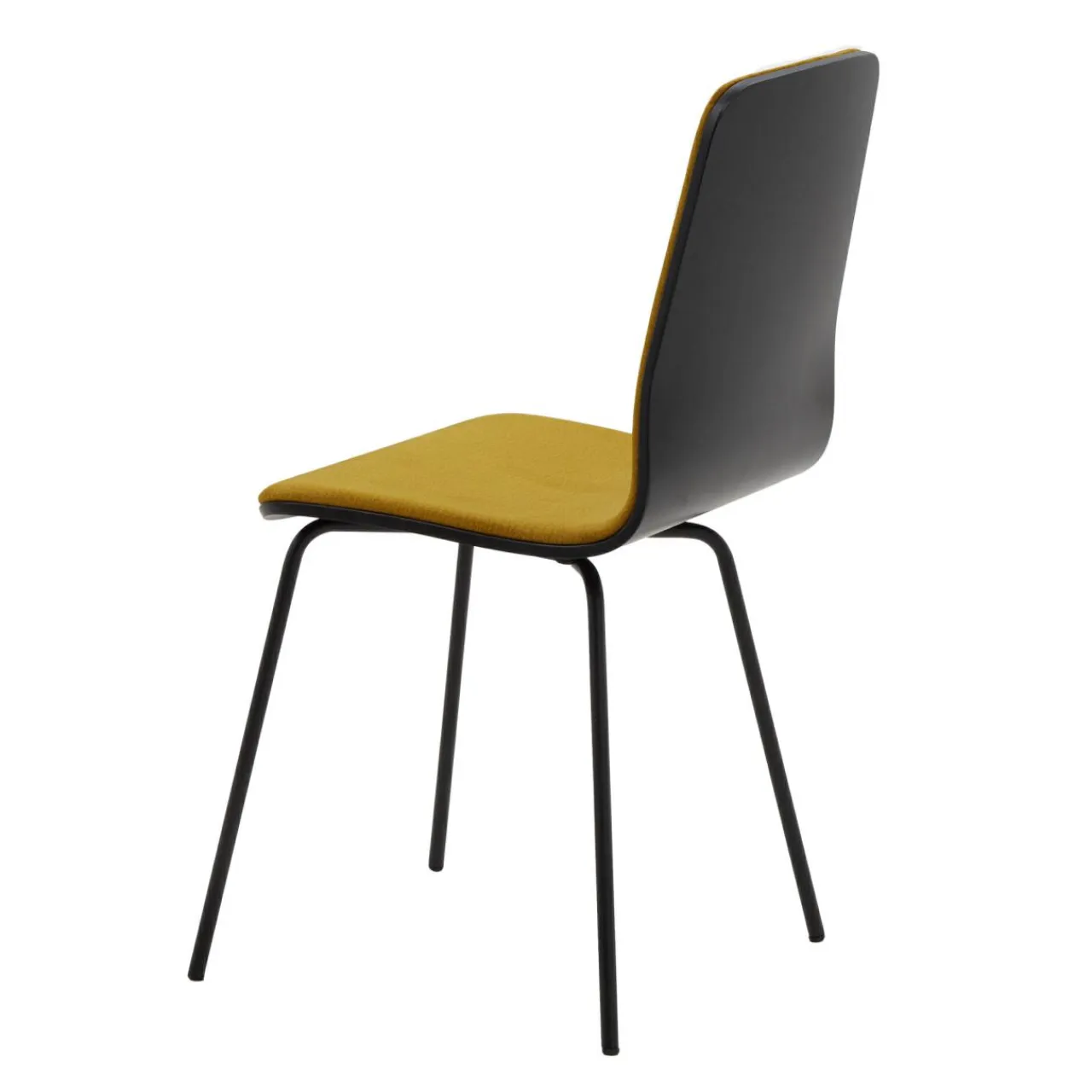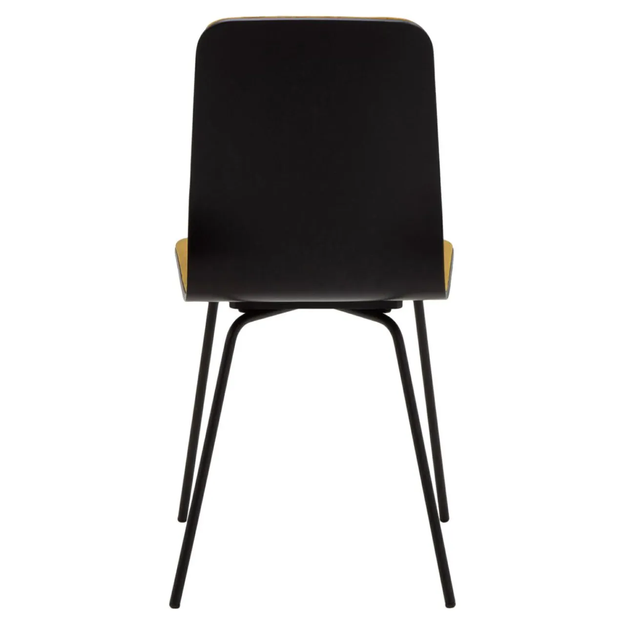 - Podstawę krzesła stanowią metalowe nogi w czarnym kolorze.