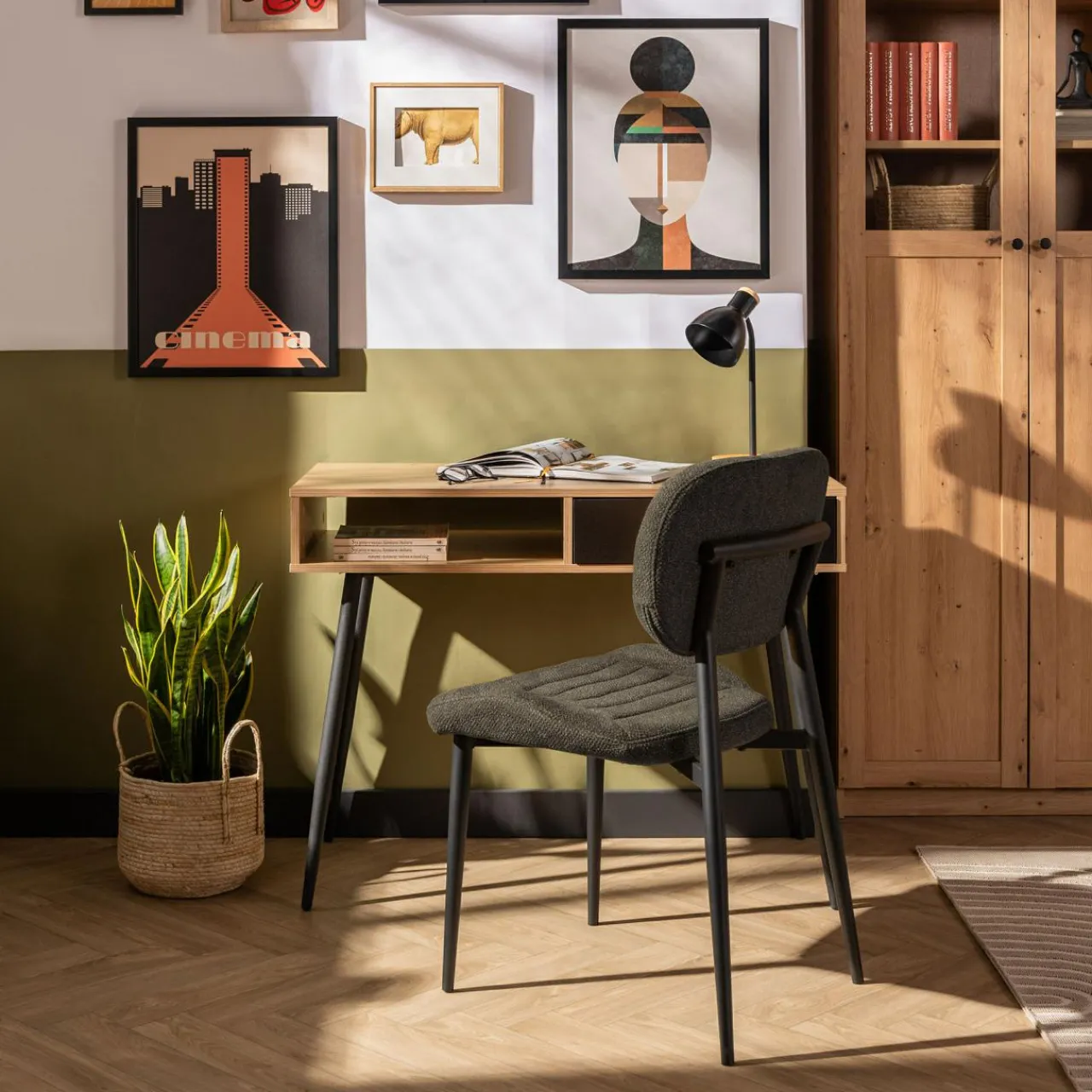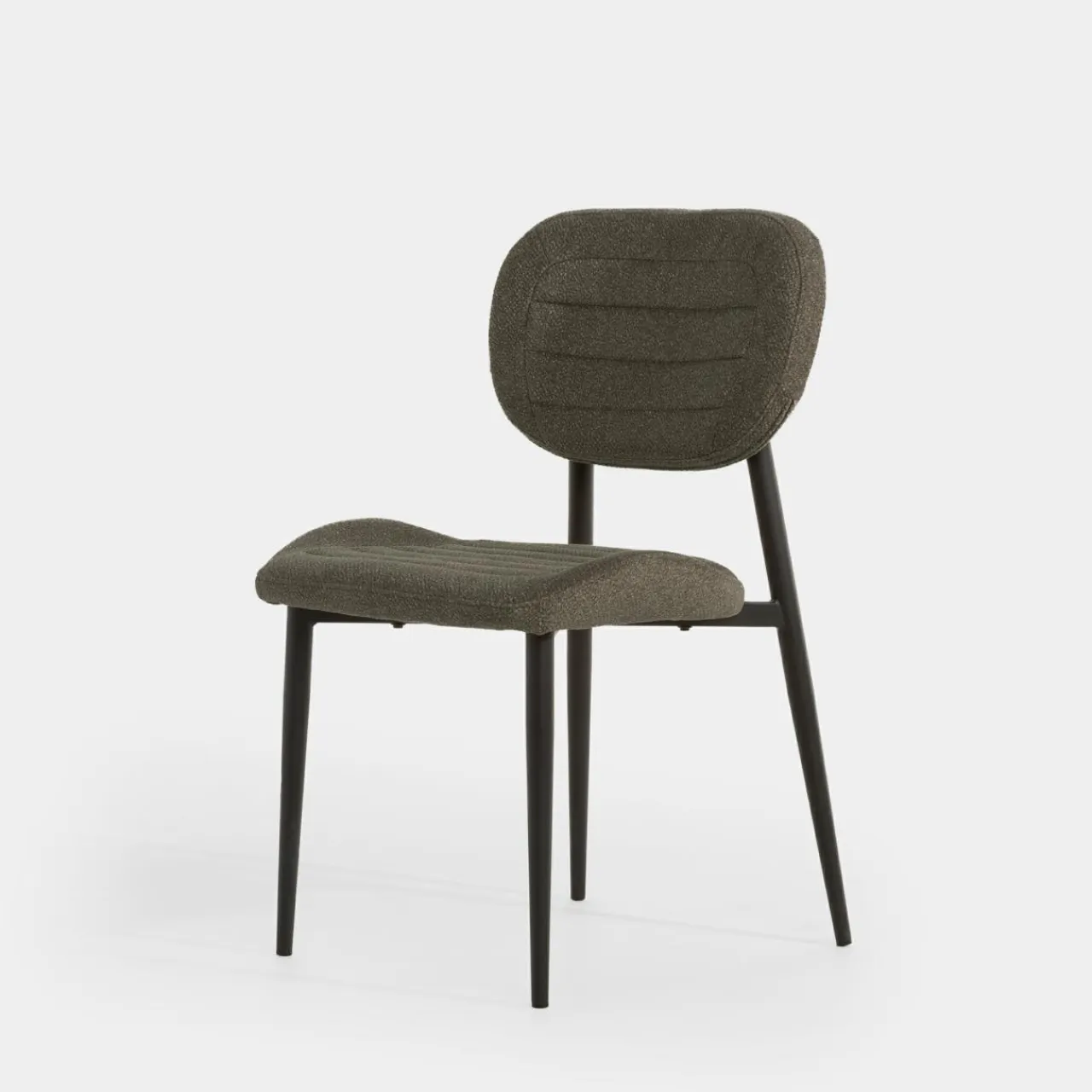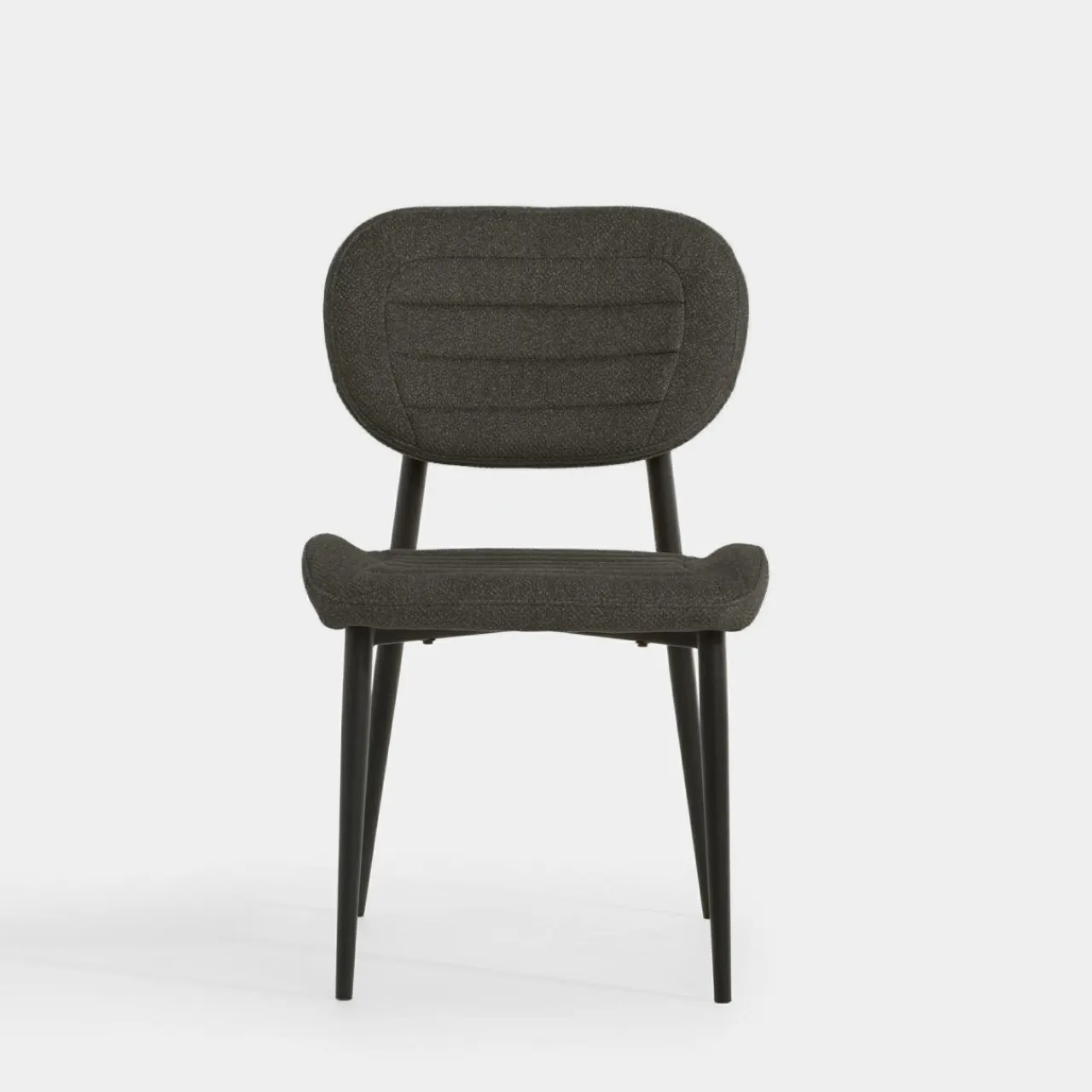 Odkryj nowoczesny design krzesła FINESSET. Połączenie smukłego, metalowego stelaża i szarej tapicerki prezentuje się nowocześnie.