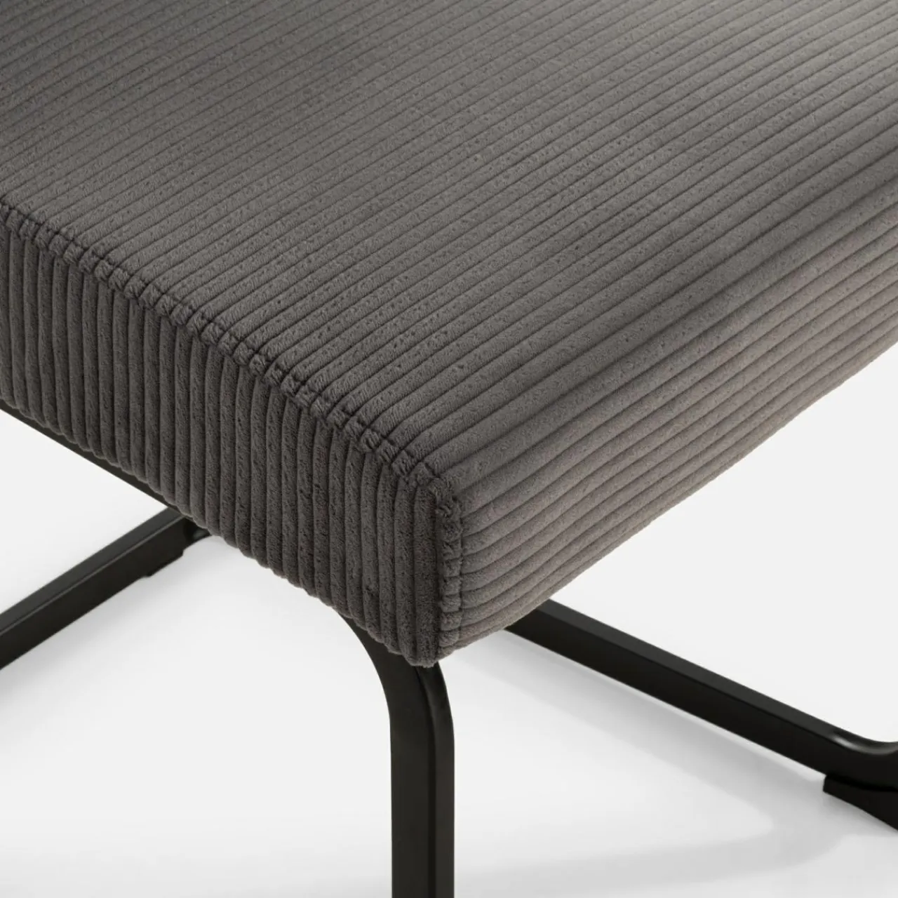 - Szara tkanina wykorzystana do obicia krzesła jest niezwykle delikatna i miękka, oferując wyższy komfort użytkowania.