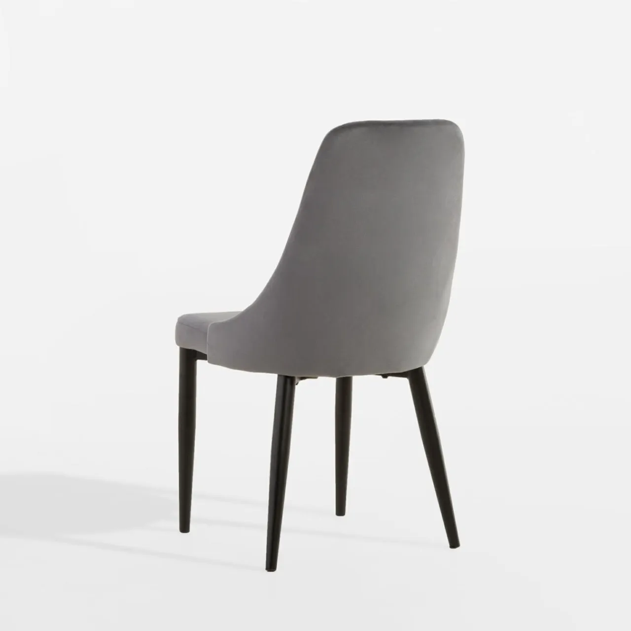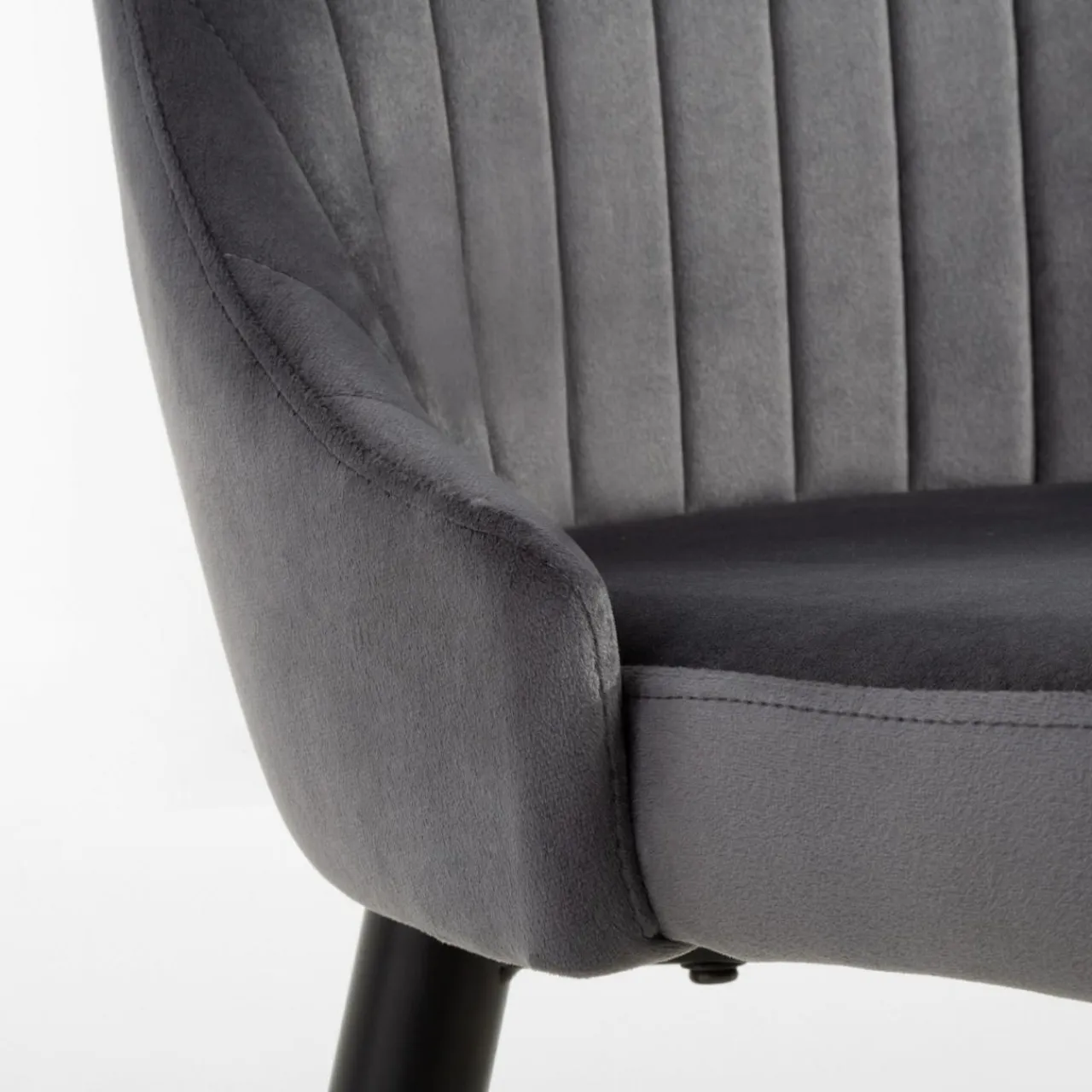 Podkreśl nowoczesny styl swojej jadalni z krzesłem HOMESTED. Stalowy stelaż wybarwiony na czarno połączony z szarym odcieniem weluru wpisze się w ciemne aranże, również loftowe. Ciekawe pionowe przeszycia podkreślą nowoczesny styl aranżacji.