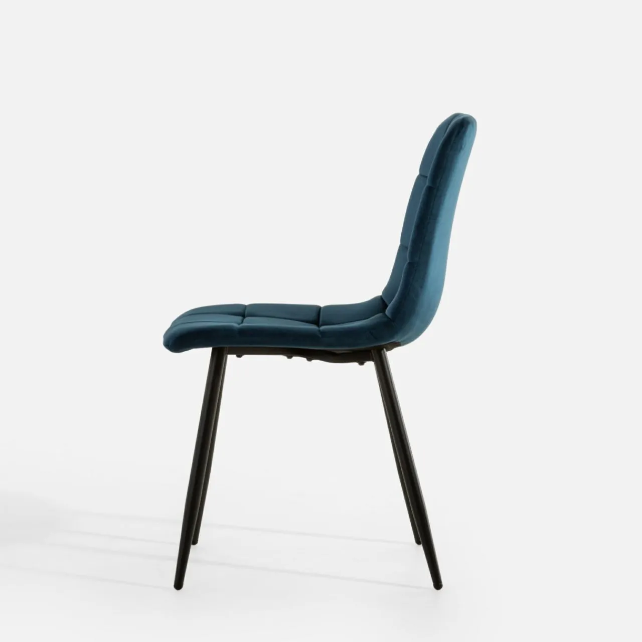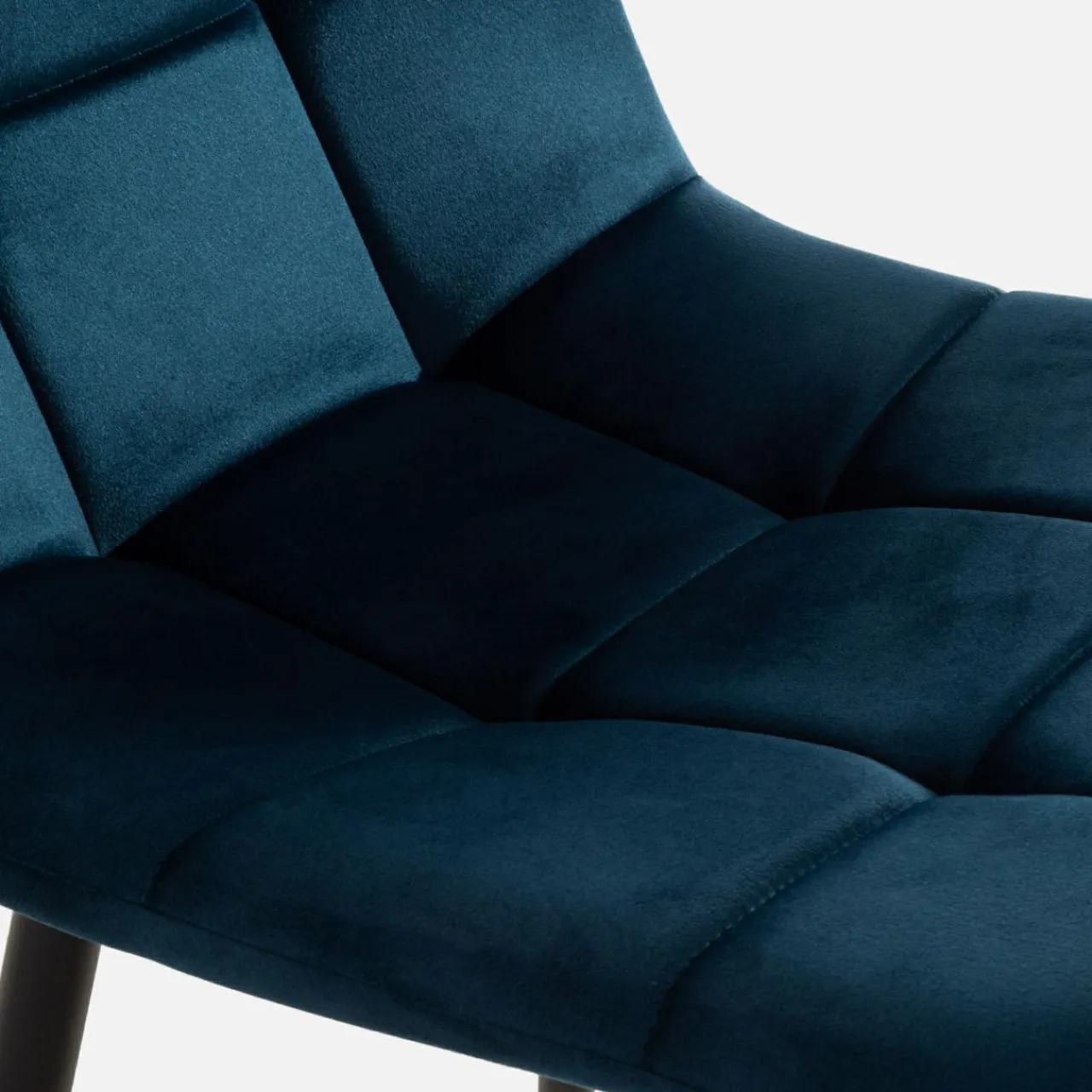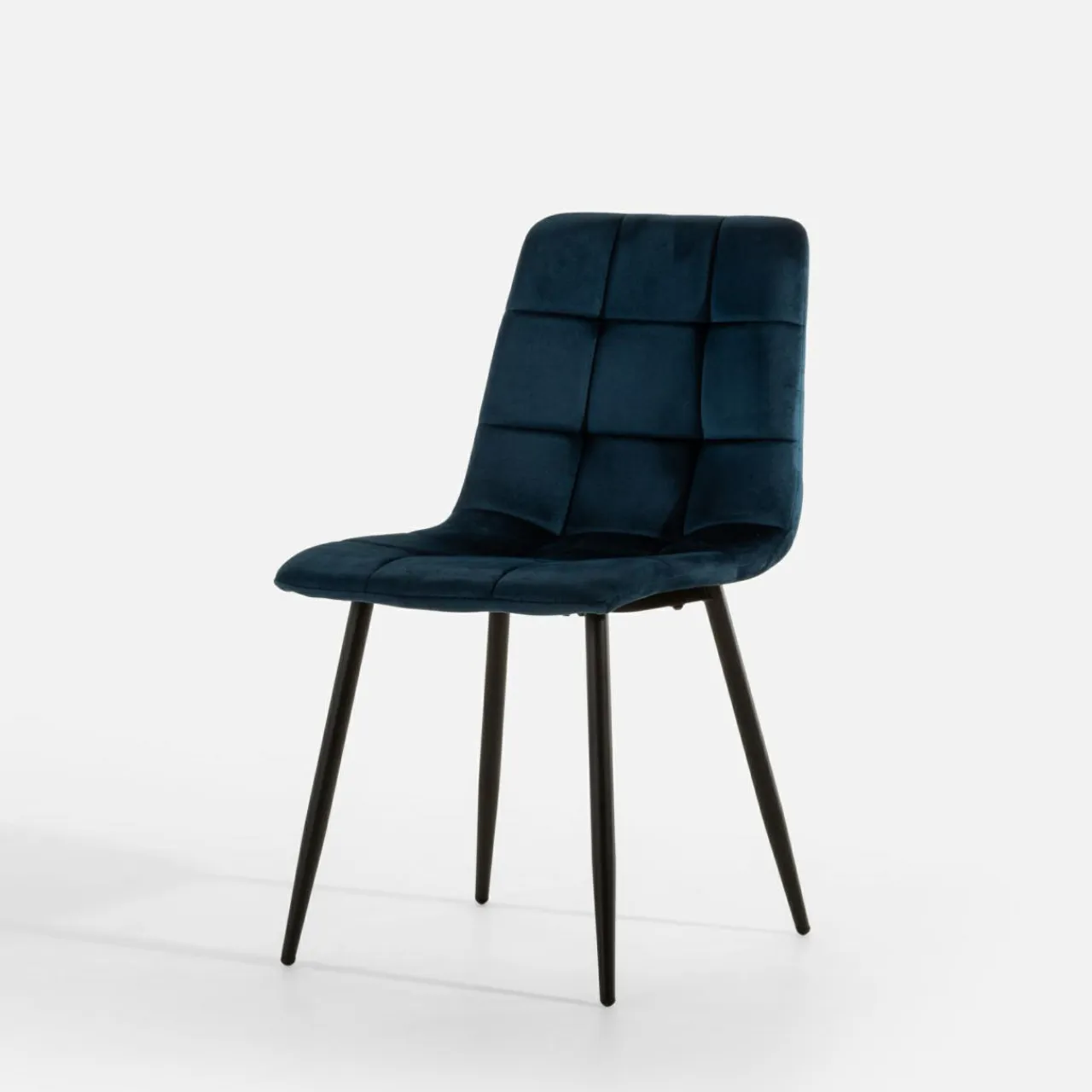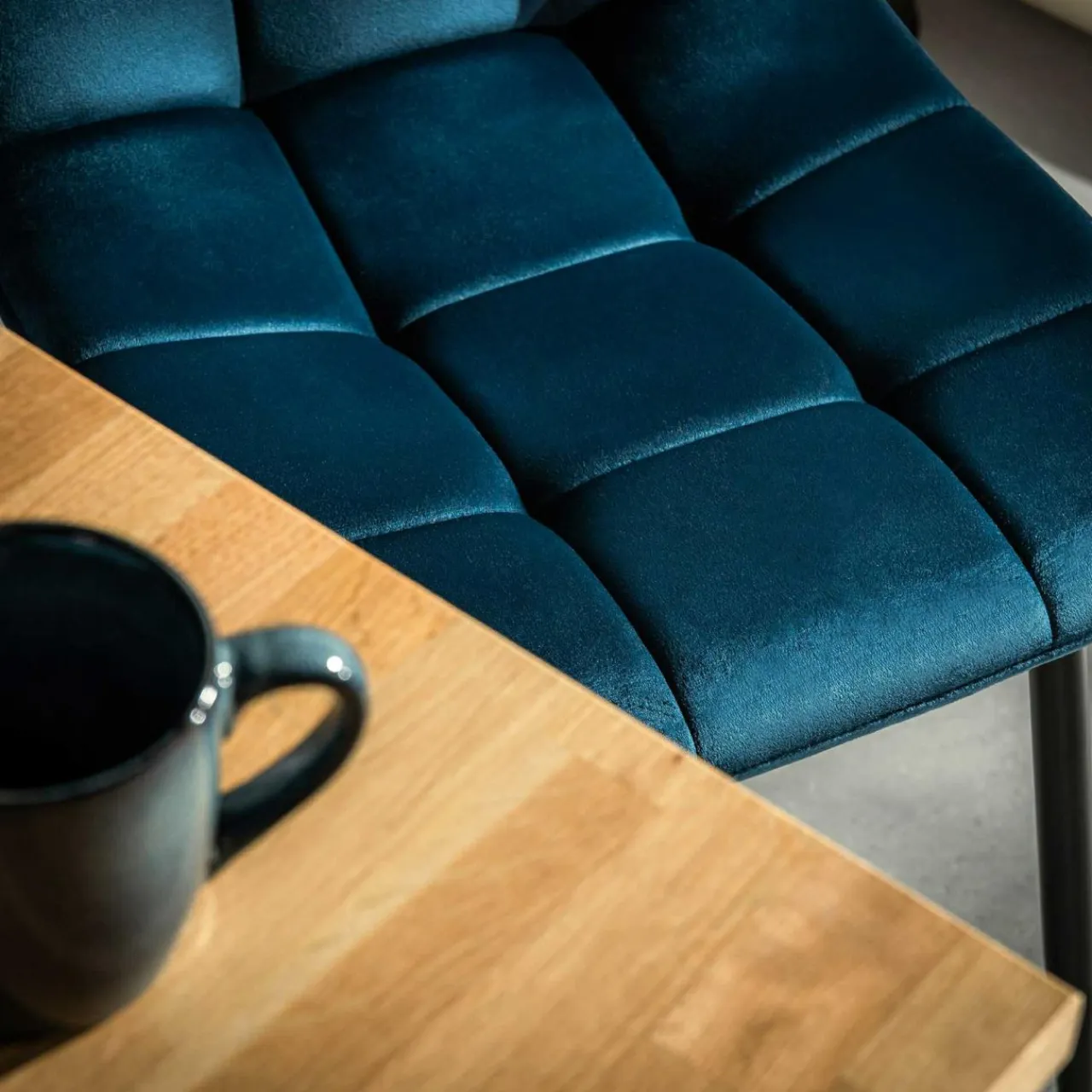 Krzesło JYRANDO wprowadzi do wnętrza nutę nowoczesności. Wykończenie z granatowego miękkiego weluru wygląda stylowo, a geometryczne przeszycia dodadzą jadalni ciekawego akcentu.