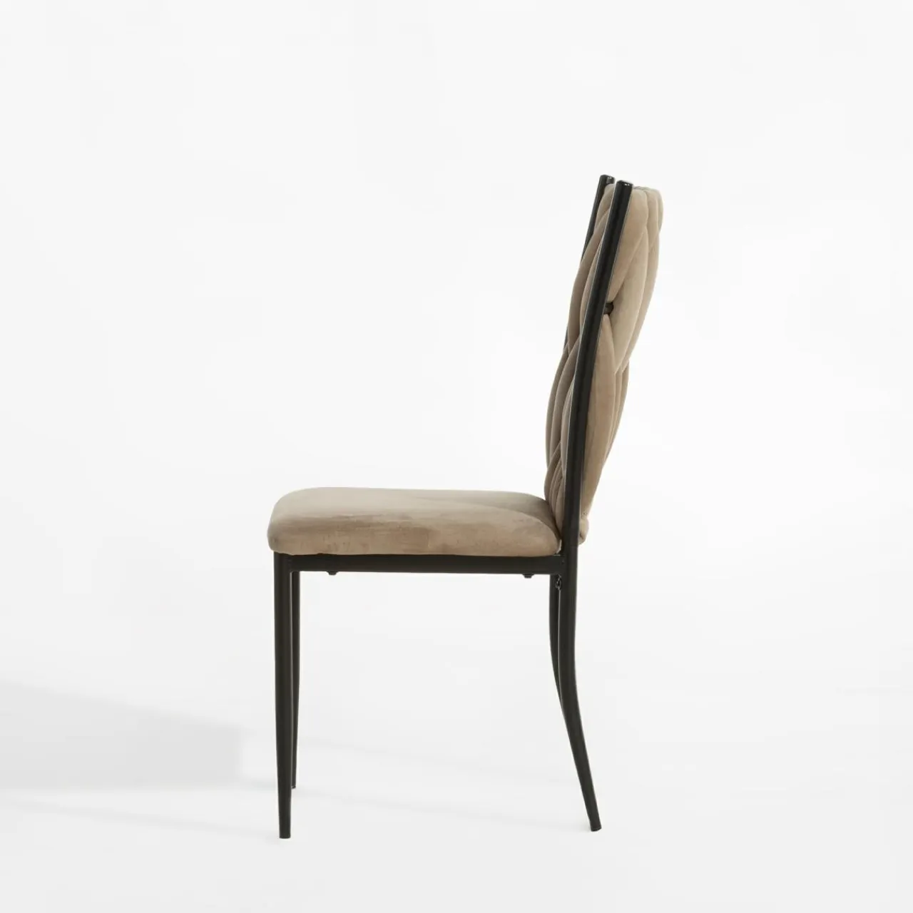 - Krzesło zostało obite miłym w dotyku welurem w szarobeżowym kolorze.