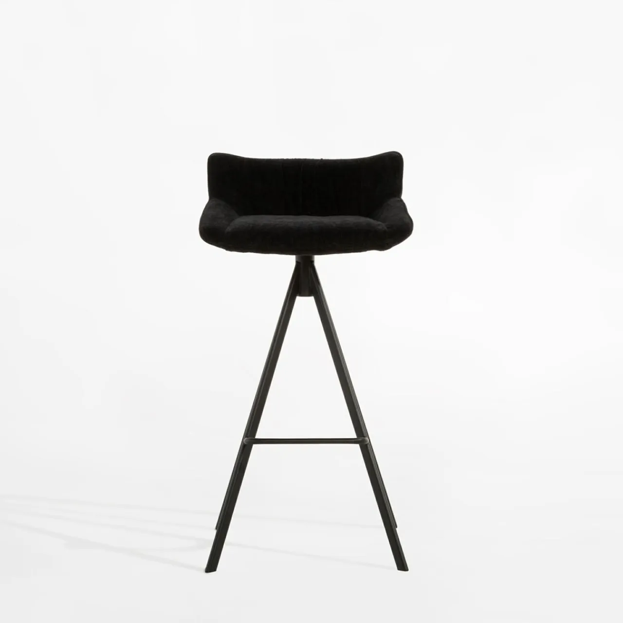 Krzesło barowe FLAIRO wyróżni się w jadalni dzięki ciekawej melanżowej tapicerce w odcieniach czerni.