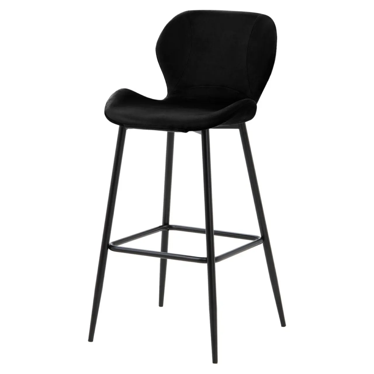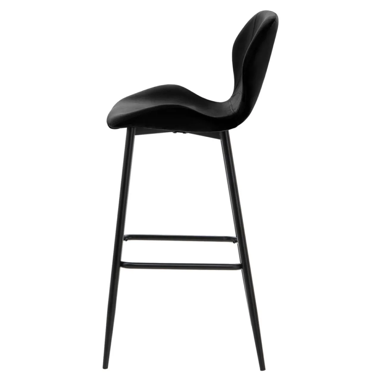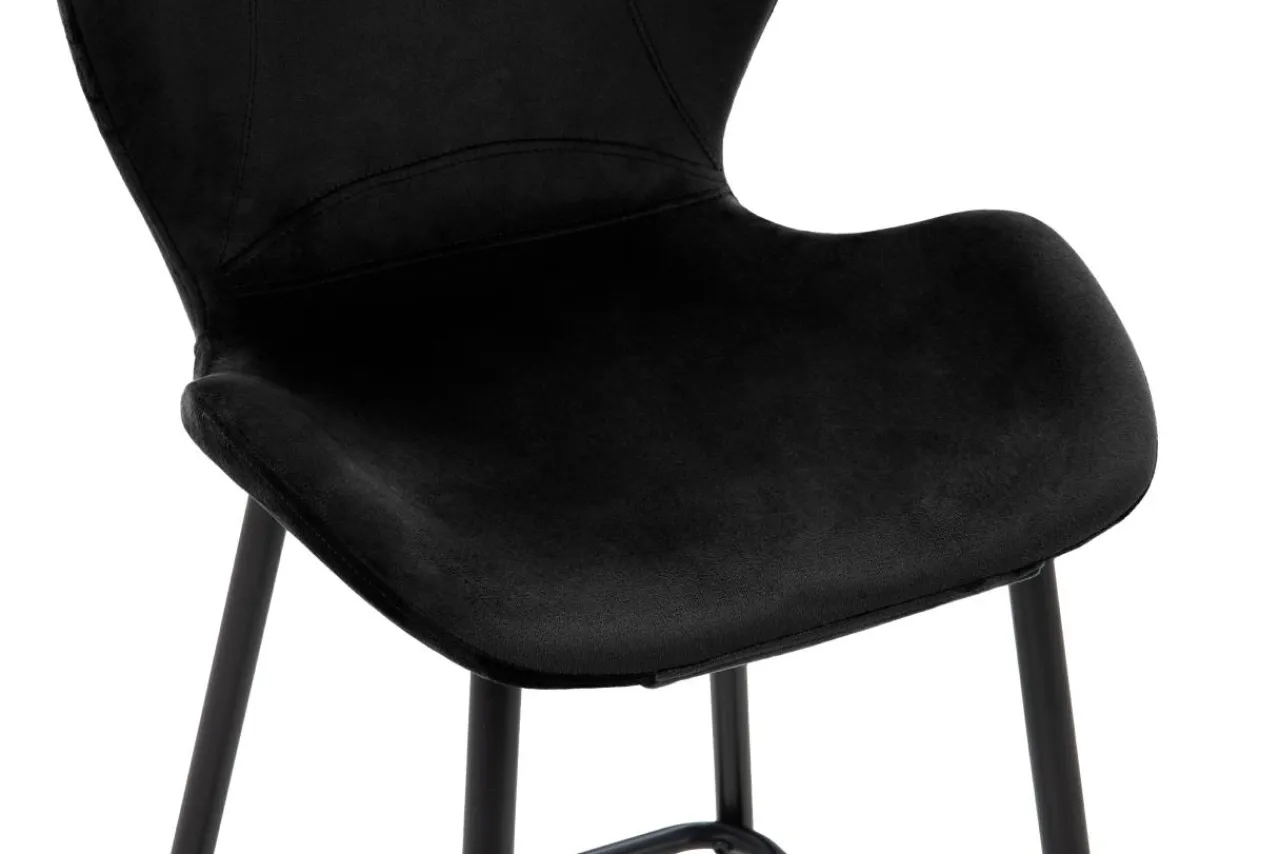 Krzesło obite jest welurem w czarnym kolorze. Materiał pod wpływem dotyku delikatnie zmienia swój odcień.