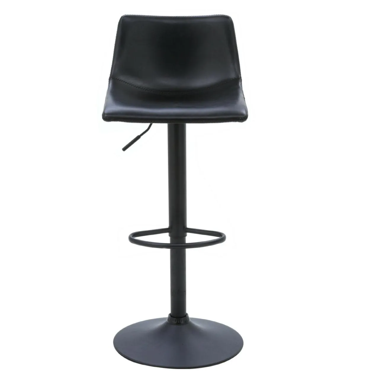 Siedzisko modelu ENIFO pokryto czarną skórą ekologiczną. Jest ono wyprofilowane i wypełnione pianką.